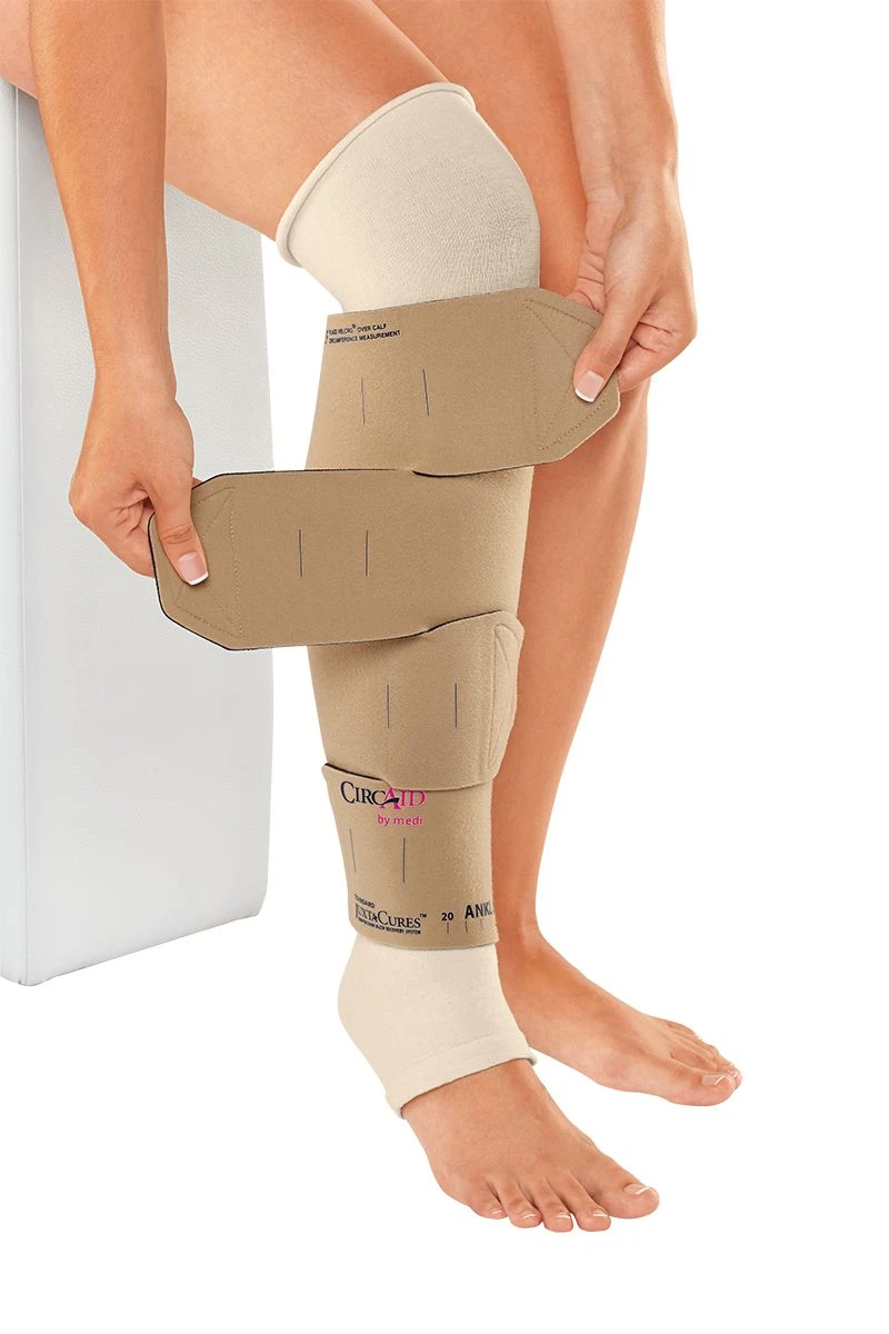 При лечении венозных язв необходимо уменьшить венозную гипертензию, что возможно при помощи создании высокого рабочего давления. Компания medi предлагает новую разработку, создающую необходимый уровень давления с его правильным физиологическим распределением – бандаж circaid JUXTACURES. Венозные язвы сопровождаются выраженным отёком, который в процессе лечения начинает быстро уменьшаться. Конструкция бандажа позволяет регулировать его размер по мере уменьшения отёка.