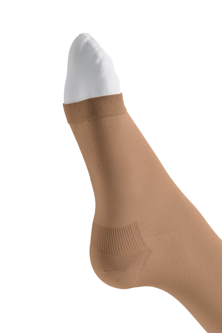 В набор входят два вида компрессионных гольфов: одна пара (два гольфа) mediven ulcer белого цвета с закрытым носком и один гольф mediven ulcer plus бежевого цвета с открытым носком. Набор предназначен для использования на одной ноге.