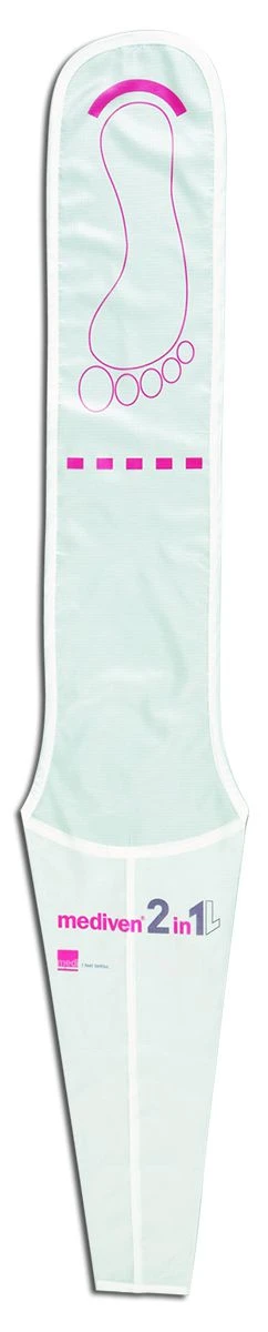 Устройство для надевания и снятия medi 2 в 1 – хорошее средство для надевания и снимания всех стилей и моделей компрессионных чулок. Благодаря хорошо продуманной системе изделие легко снимается и надевается. Приспособление medi 2in1 подходит для открытых и закрытых пальцев и может быть легко и аккуратно сложено после использования.