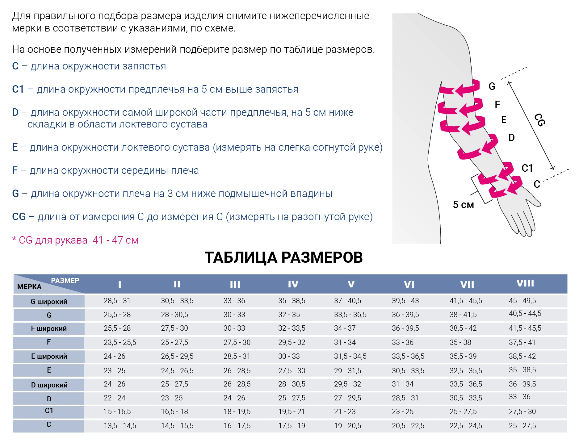 Если профилактическая компрессия также необходима в области кисти и пальцев, то компрессионный рукав до запястья рекомендуется использовать вместе с компрессионной перчаткой, закрывающей кисть и пальцы. Если профилактическая компрессия необходима на тыле кисти, но не нужна на пальцах, то для профилактической компрессии можно использовать комбинированный компрессионный рукав.