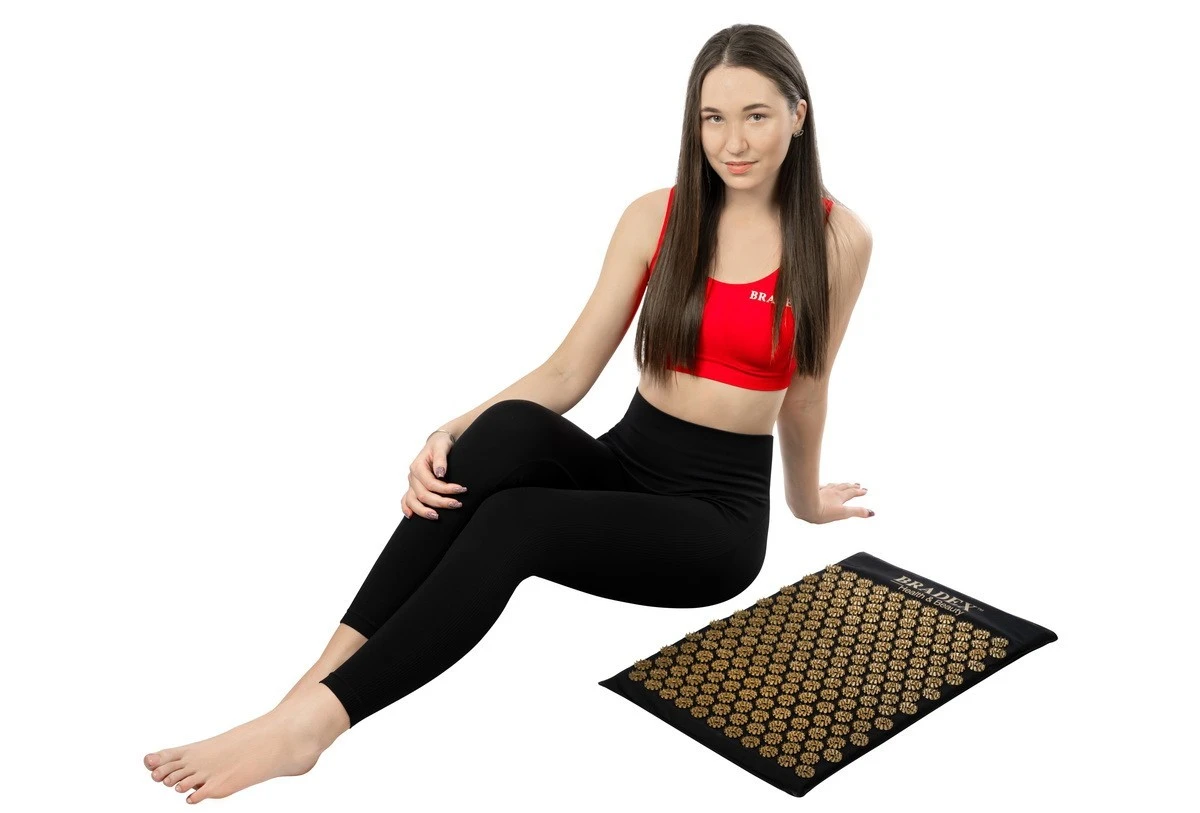 Медицинский массажный коврик с мягким наполнителем точечно воздействует на определенные участки тела с помощью острых акупунктурных шипов, расположенных на тканой хлопковой основе.