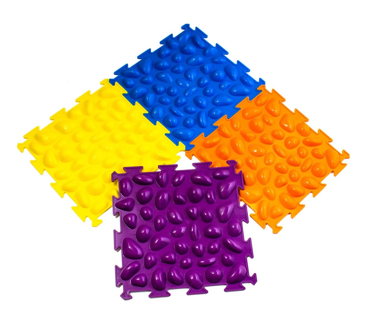 Массажный коврик Цветные камешки будет полезен и детям, и взрослым. Благодаря конструкции с выступами он способствует правильному развитию физиологических сводов детских стоп, укрепляет мышцы и предотвращает развитие плоскостопия. Массажный коврик оказывает благоприятное влияние на весь организм, стимулируя кровообращение, снимая усталость и болевой синдром в ступнях, нормализуя тонус. Оригинальная и удобная конструкция в виде паззлов позволит комбинировать длину и ширину поверхности коврика по вкусу и потребностям. В изделии предусмотрены два вида жесткости – твердая поверхность для взрослых и мягкая для детей.