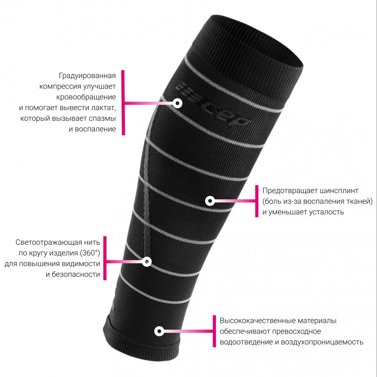 Повысьте свою выносливость и достигайте лучших результатов с мужскими компрессионными гетрами от CEP. Главной особенностью модели является технология Smart Reflective — светоотражающие элементы вокруг всего изделия для безопасных занятий спортом в темное время суток. Теперь вы можете сосредоточиться на пробежках до восхода солнца и после заката.