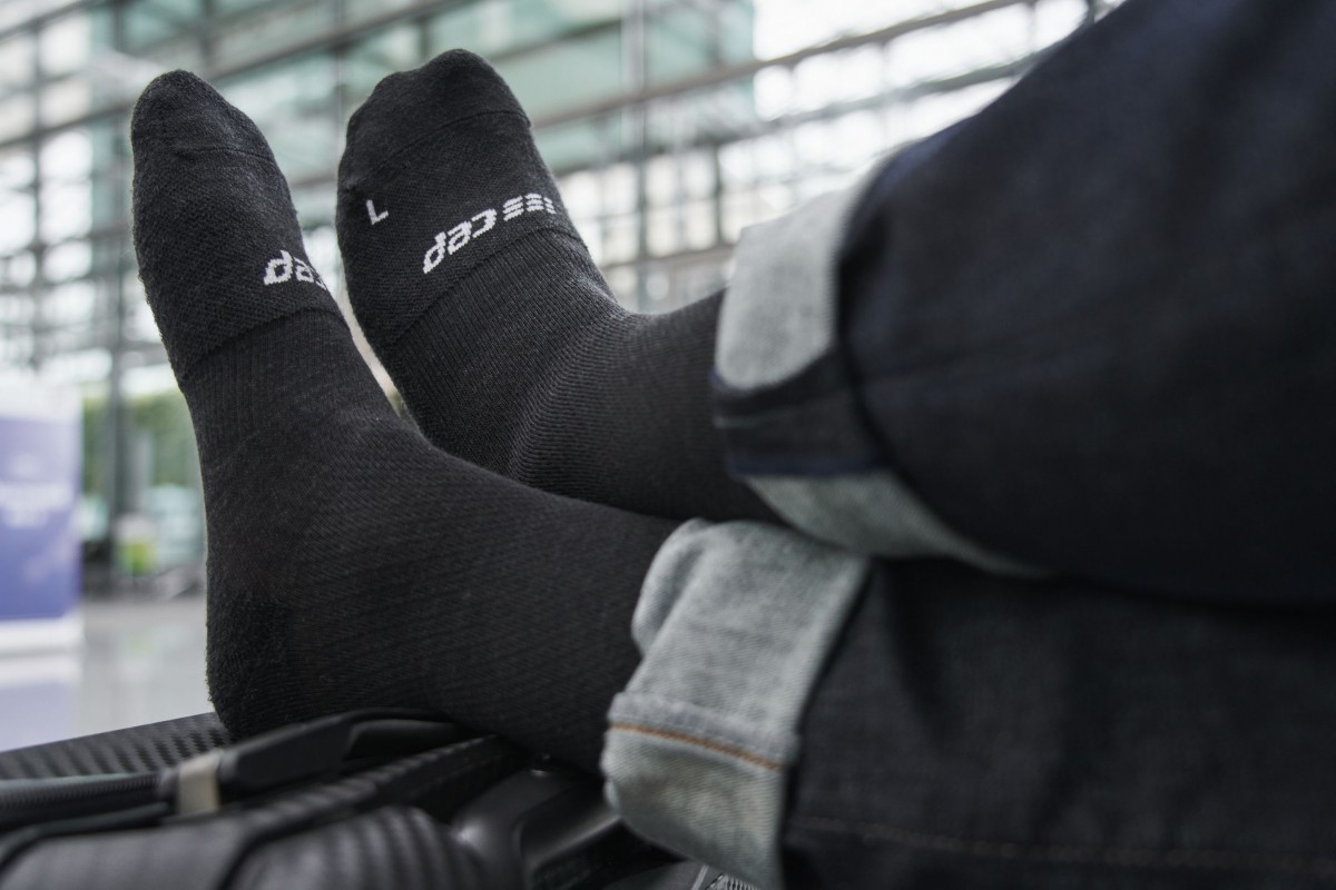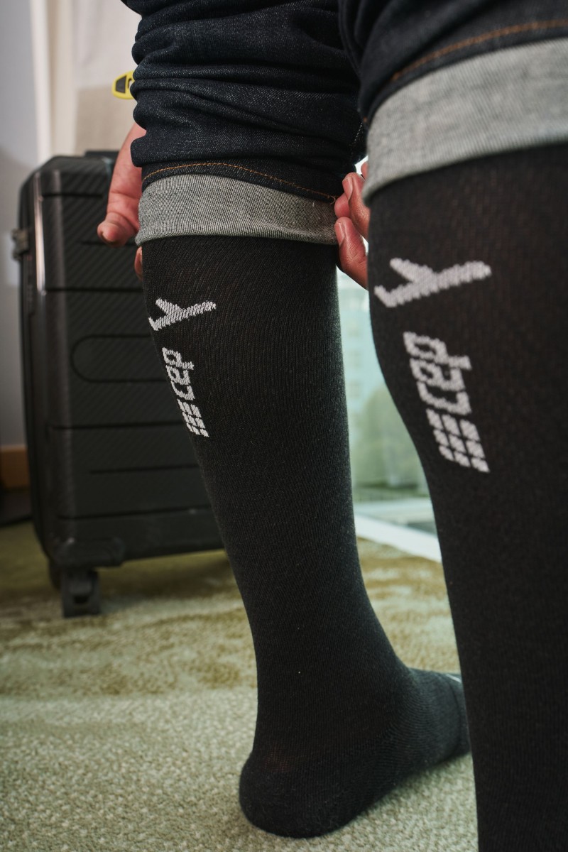 Компрессионные изделия бренда CEP помогают не только во время физической нагрузки, но и в полетах. Благодаря компрессии и шерсти мериноса в составе гольфы Flight Socks ускоряют регенерацию после тренировки и стимулируют кровообращение, а также снижают риск тромбообразования при длительных перелетах. В самолете нет возможности передвигаться, но за счет компрессии улучшается микроциркуляция крови, уменьшаются отеки. Шерсть мериноса – уникальный дышащий материал, который обладает антибактериальными свойствами (препятствует образованию неприятного запаха), терморегулирующими и влагоотводящими, поэтому вам будет комфортно в салоне самолета, ноги не будут потеть. Гольфы с анатомической посадкой хорошо сидят на ноге без складок, не сползают.