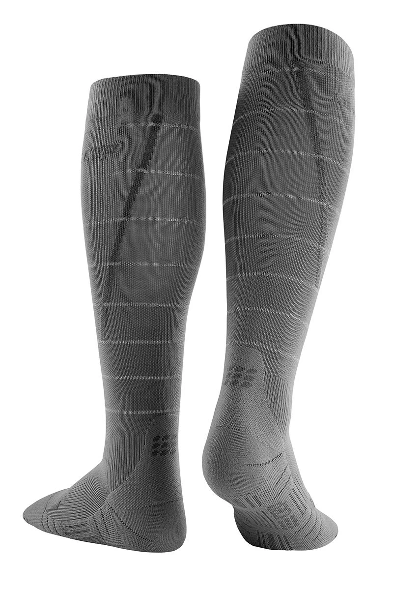 Интенсивные тренировки и соревнования требуют сильных икр и стоп. Компрессия в гольфах Reflective от CEP ускоряет кровообращение: кислород быстрее поступает в кровь и быстрее выводится лактат, а значит, мышцы восстанавливаются уже во время спорта. Компрессия также снижает изнуряющие мышечные вибрации, чтобы ваши ноги чувствовали себя легко, и дает заметно больше энергии для бега на короткие и длинные дистанции. Компрессионная вставка в области среднего отдела стопы обеспечивает дополнительную стабилизацию стопы.
