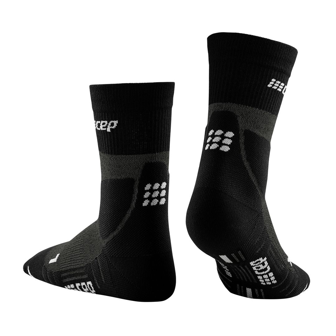 Обязательно включите в вашу экипировку носки Hiking Merino Mid Cut. Спортивная компрессия стабилизирует лодыжки во время длительных походов, улучшая контроль за движениями. В носках повышается работоспособность, мышцы обогащаются кислородом и питательными вещества, снижается риск возникновения спазмов и отеков. Вы получите прилив сил тогда, когда он вам необходим больше всего! Протекторы в зоне ахиллова сухожилия защищают от травм, а значит, подъемы и спуски будут гораздо безопаснее.