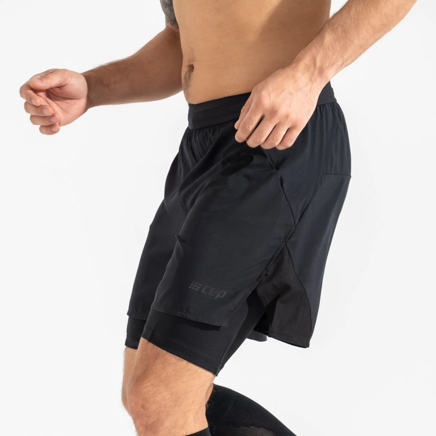 Зачем выбирать между функциональностью и комфортом? Улучшить ваши спортивные результаты помогут мужские шорты 2 в 1 от бренда CEP. Внутренняя часть изделия обеспечивает плотную посадку с мягкой компрессией, благодаря которой поддерживается четырехглавая мышца бедра, внешний слой более свободный, подходит для активных амплитудных движений.