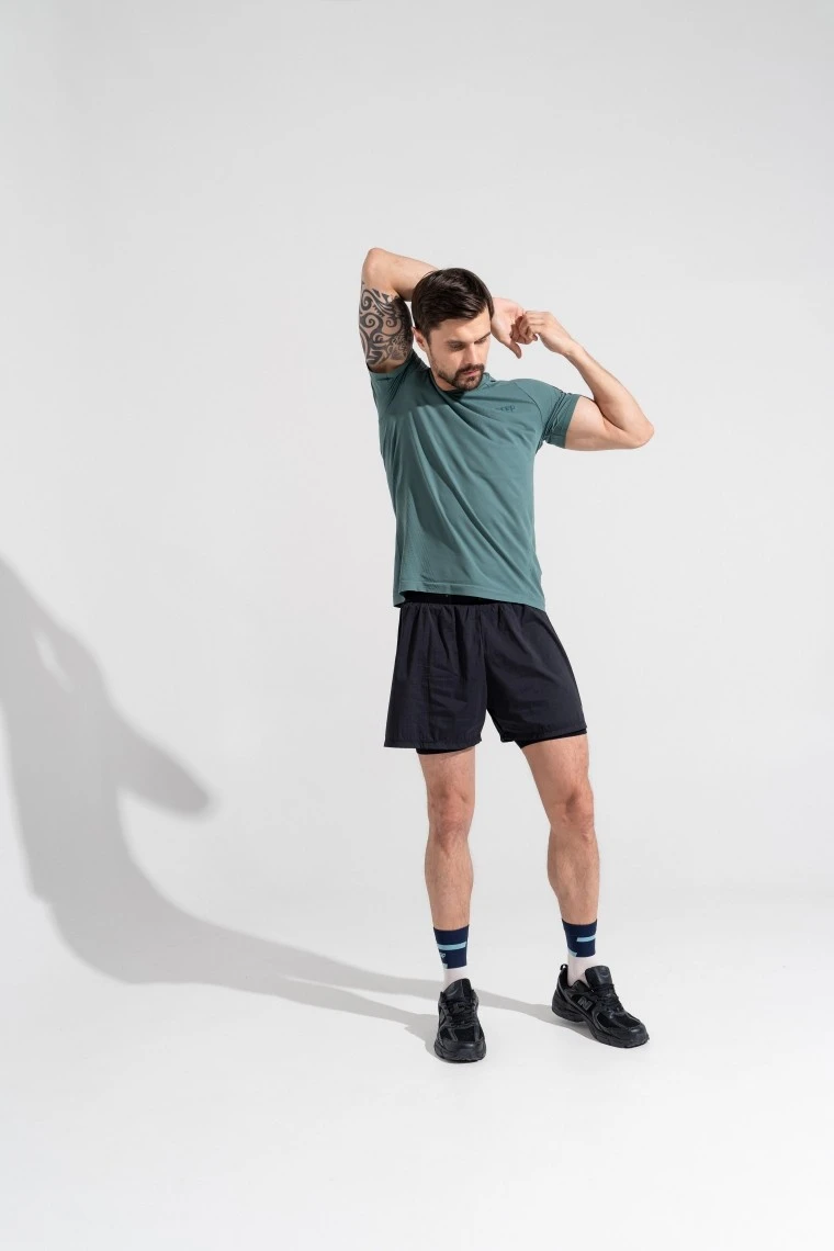 Когда бегаешь, ценишь свободу движений, при этом важно, чтобы спортивная экипировка была максимально удобной и функциональной. С этой задачей отлично справляются мужские сверхлегкие шорты 2 в 1 от бренда CEP. Нижний слой изделия комфортно облегает ноги и препятствует натиранию, внешний слой более свободный для активных движений.