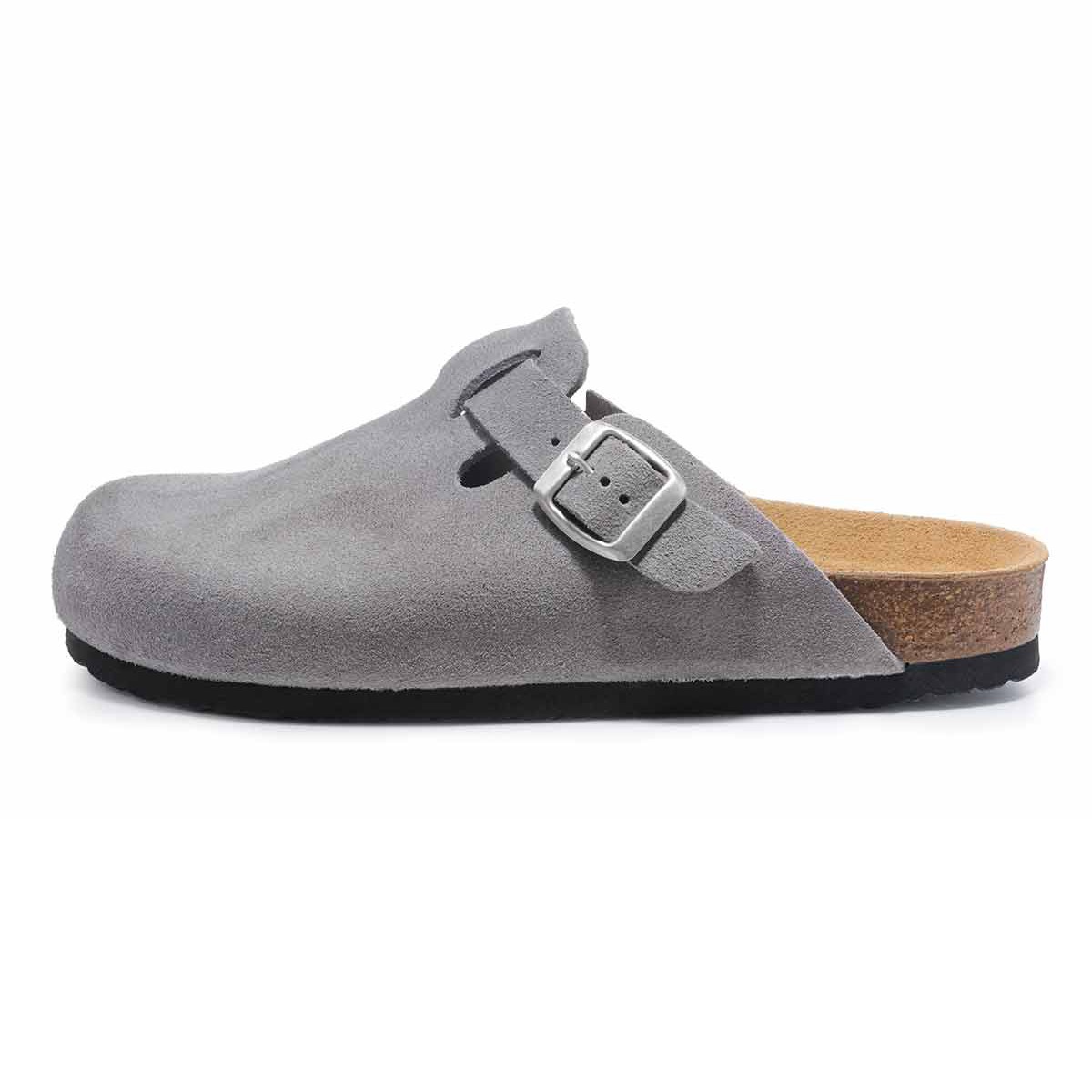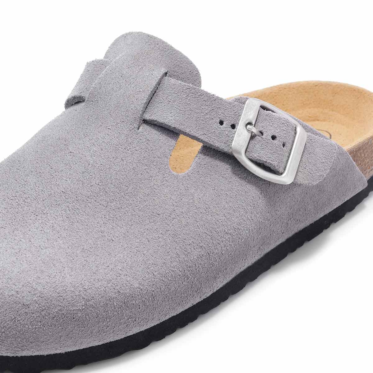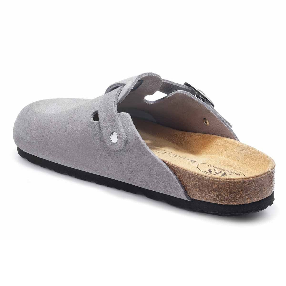 В поисках удобной и стильной всесезонной пары обратите внимание на анатомические клоги из натуральной замши графитового цвета. Модель с закрытым мысом отличается широким регулирующимся ремешком с пряжкой. Металлическая фурнитура цвета состаренного серебра не содержит никель и кадмий и является гипоаллергенной. Натуральный, мягкий и одновременно прочный материал верха держит форму, благодаря чему обувь легко надевать.