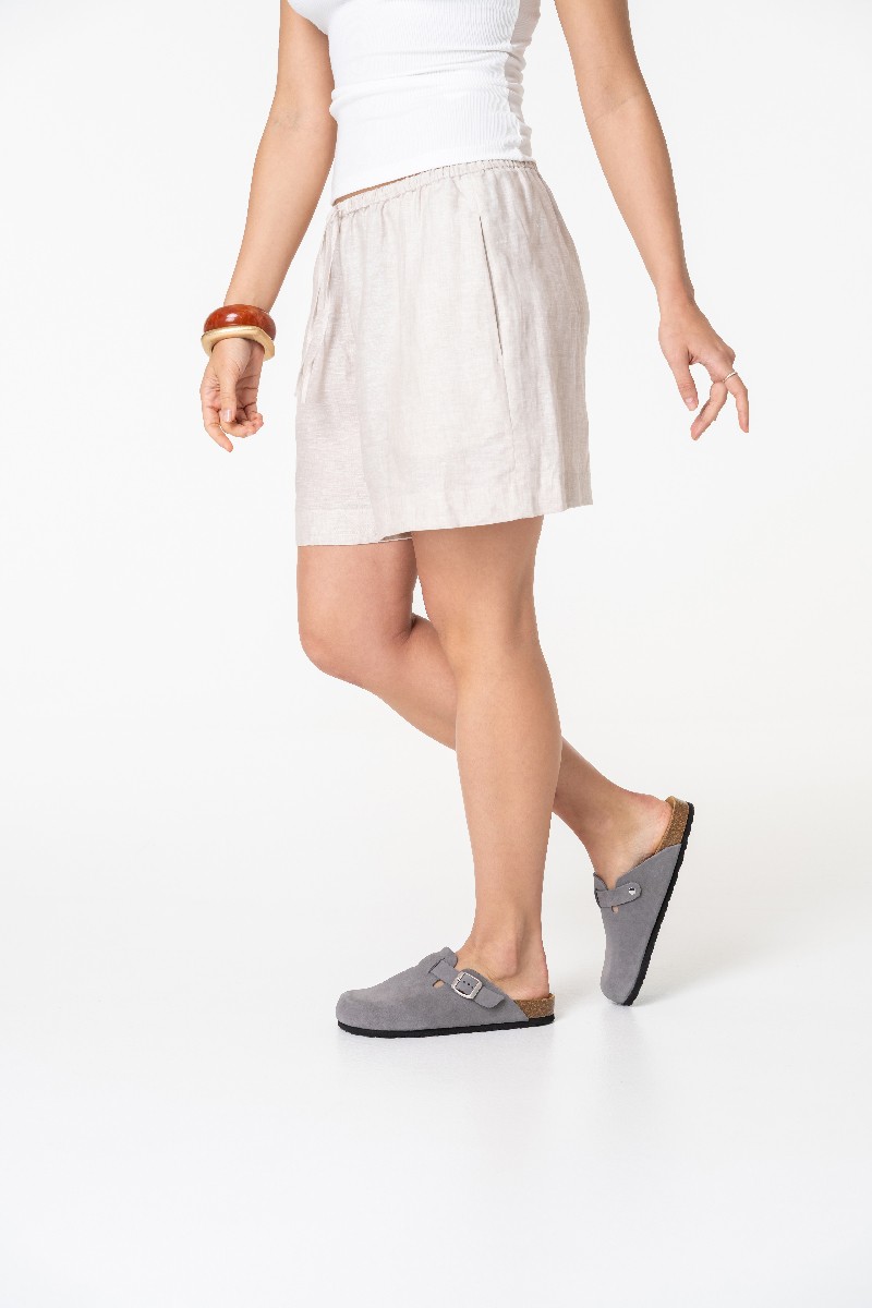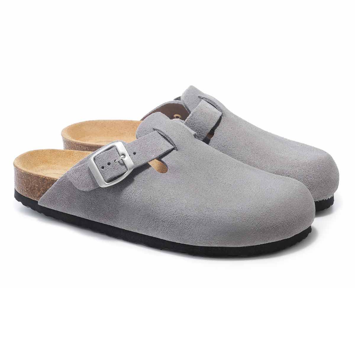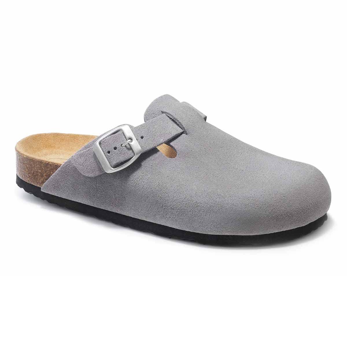 В поисках удобной и стильной всесезонной пары обратите внимание на анатомические клоги из натуральной замши графитового цвета. Модель с закрытым мысом отличается широким регулирующимся ремешком с пряжкой. Металлическая фурнитура цвета состаренного серебра не содержит никель и кадмий и является гипоаллергенной. Натуральный, мягкий и одновременно прочный материал верха держит форму, благодаря чему обувь легко надевать.