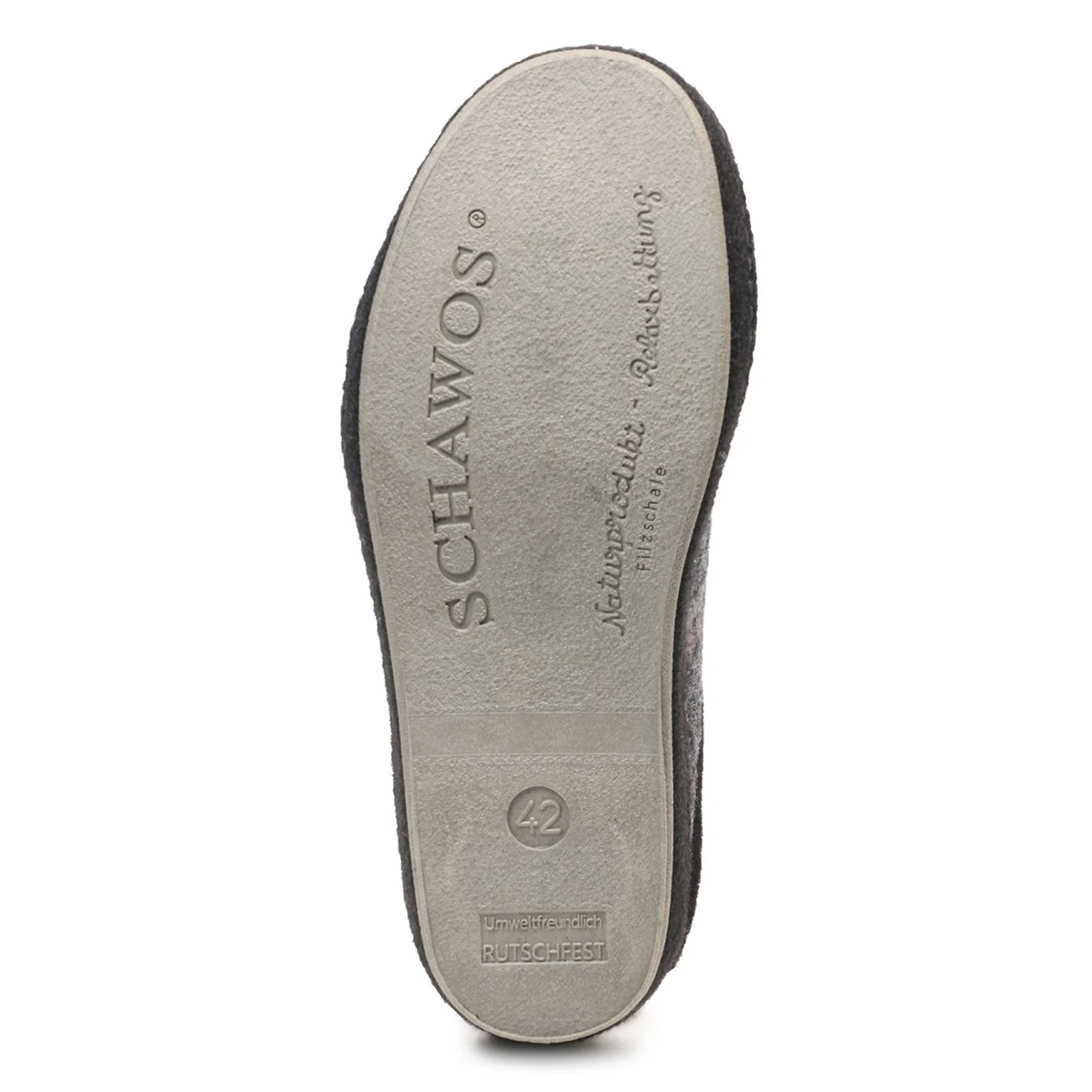Домашние тапочки для мужчин Schawos Vida снимают усталость и дарят ощущение заботы и уюта. Мягкая подкладка из овечьей шерсти и верх из дышащего войлока сохраняют тепло, отводят излишки влаги и поддерживают оптимальную терморегуляцию. Анатомическая стелька поддерживает своды стопы при ходьбе. Амортизирующая подошва снижает и распределяет ударную нагрузку при ходьбе.