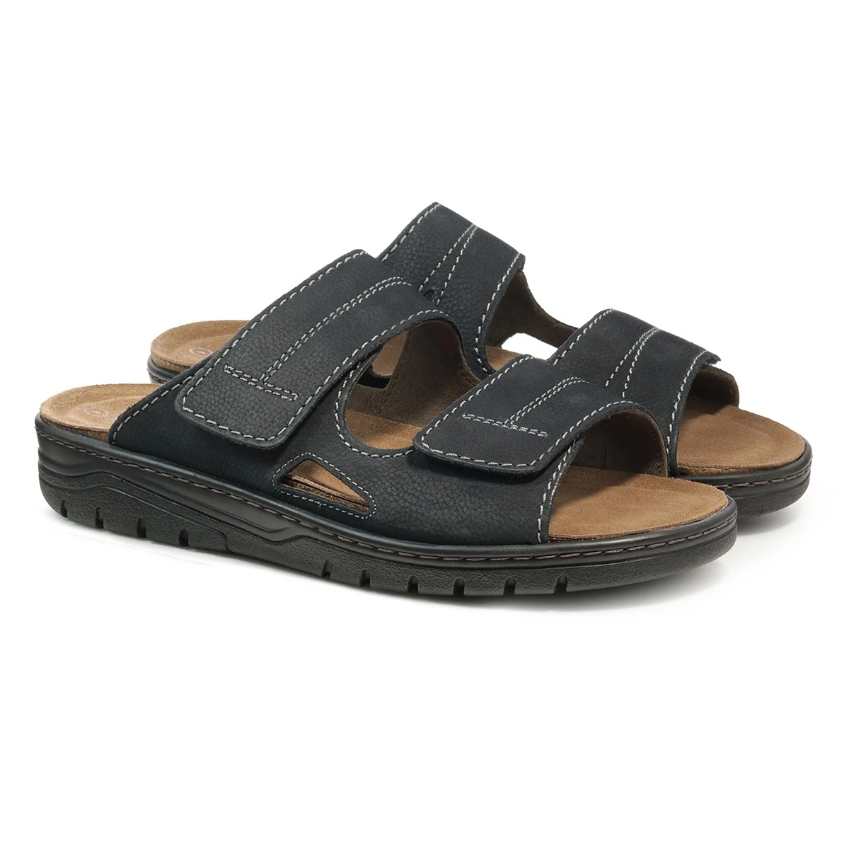 Мужские кожаные сабо в увеличенной полноте обеспечивают полную раскрываемость при помощи двух широких регулируемых ремешков с эргономичной застежкой велкро. Модель на застежках- липучках легко надеть и отрегулировать по стопе. Сабо выполнены из натуральных высококачественных и прочных материалов. Подкладка – натуральная кожа.