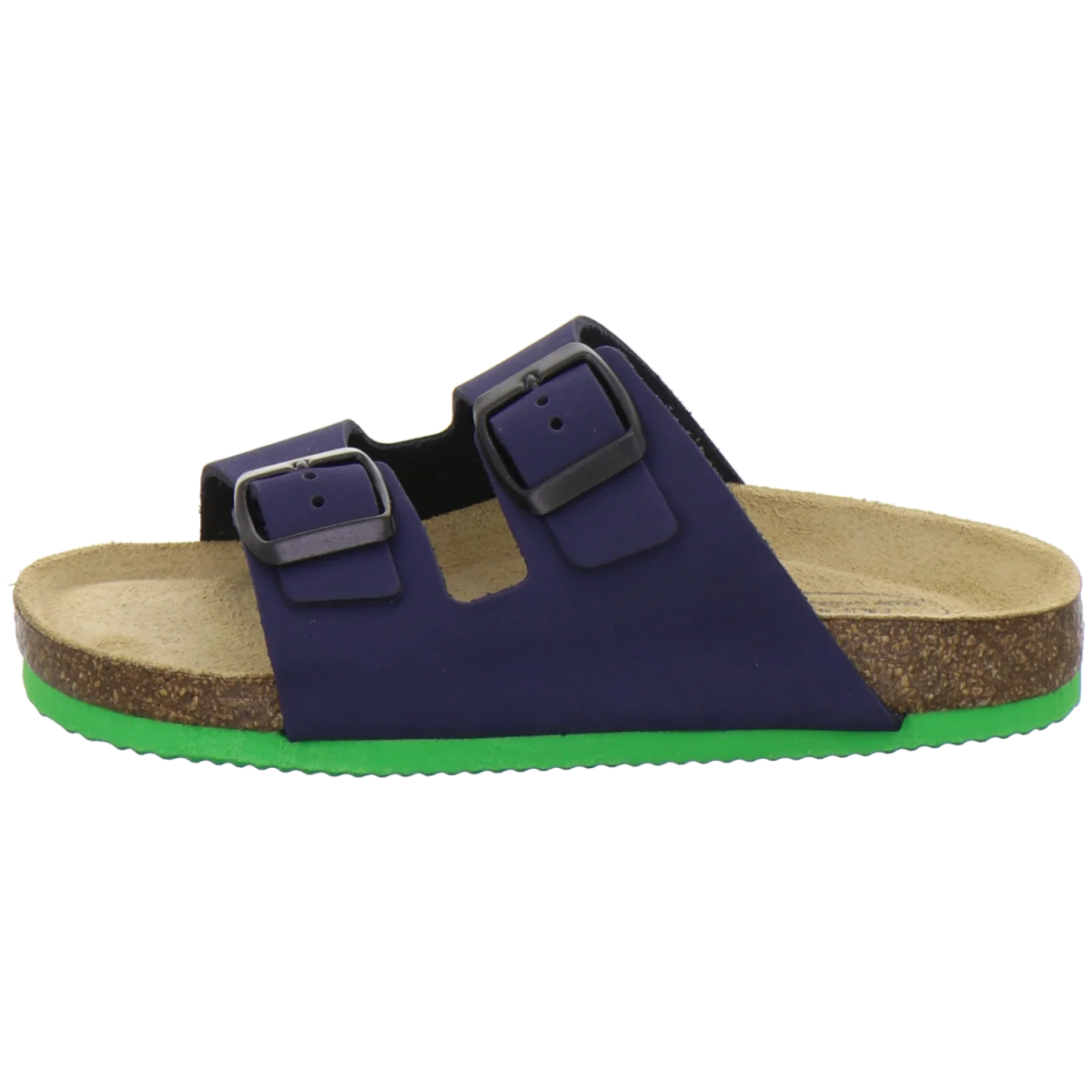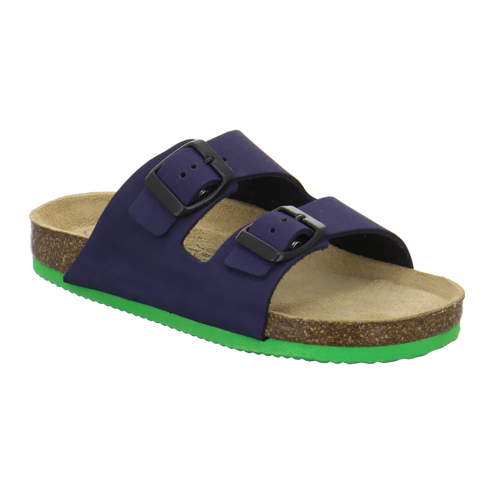 Классическая модель сабо с двумя широкими регулирующимися ремешками выполнена в мягком, но прочном нубуке и предназначена для детей. Анатомическая стелька из коры пробкового дуба поддерживает своды стопы и правильно распределяет нагрузку по стопе. Покрытие стельки из натурального велюра сохраняет стопы сухими и предотвращает проскальзывание ноги.