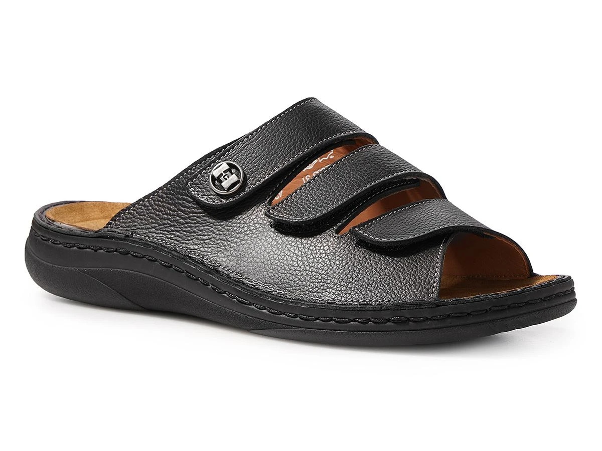 Классические мужские сабо в комфортной полноте выполнены из прочной зернистой кожи. Благодаря трем застежкам-липучкам модель имеет полную раскрываемость и легко регулируется по ноге. Идеальное облегание не только обеспечит комфорт во время носки, но также уменьшит усталость при ходьбе и повысит устойчивость. Сабо подходят не только для летнего сезона, но и в качестве домашней или сменной обуви на работу.