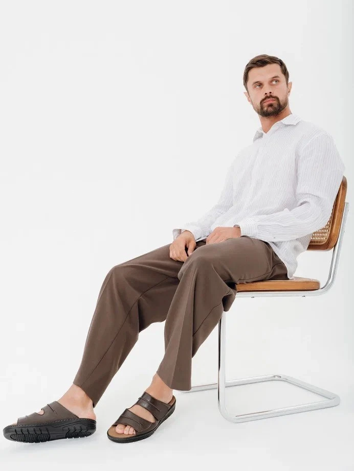 Мужские сабо в коричневом цвете незаменимы на жаркий сезон, поддержат расслабленный образ выходного дня.