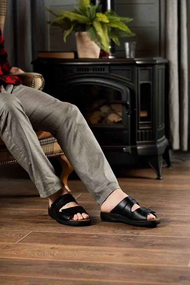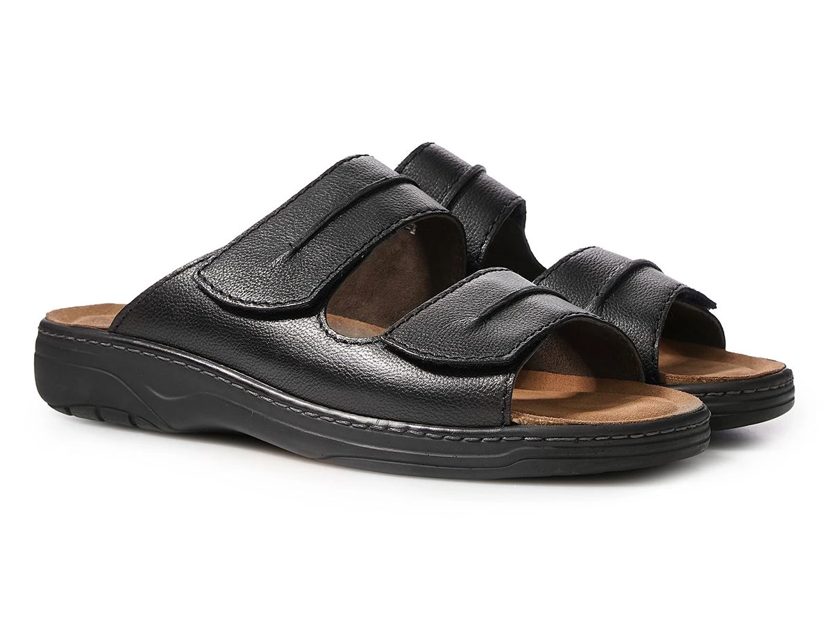 Мужские кожаные сабо в увеличенной полноте обеспечивают полную раскрываемость при помощи двух широких регулируемых ремешков с эргономичной застежкой велкро. Модель на застежках- липучках легко надеть и отрегулировать по стопе. Сабо выполнены из натуральных высококачественных и прочных материалов. Подкладка сабо – натуральная кожа.