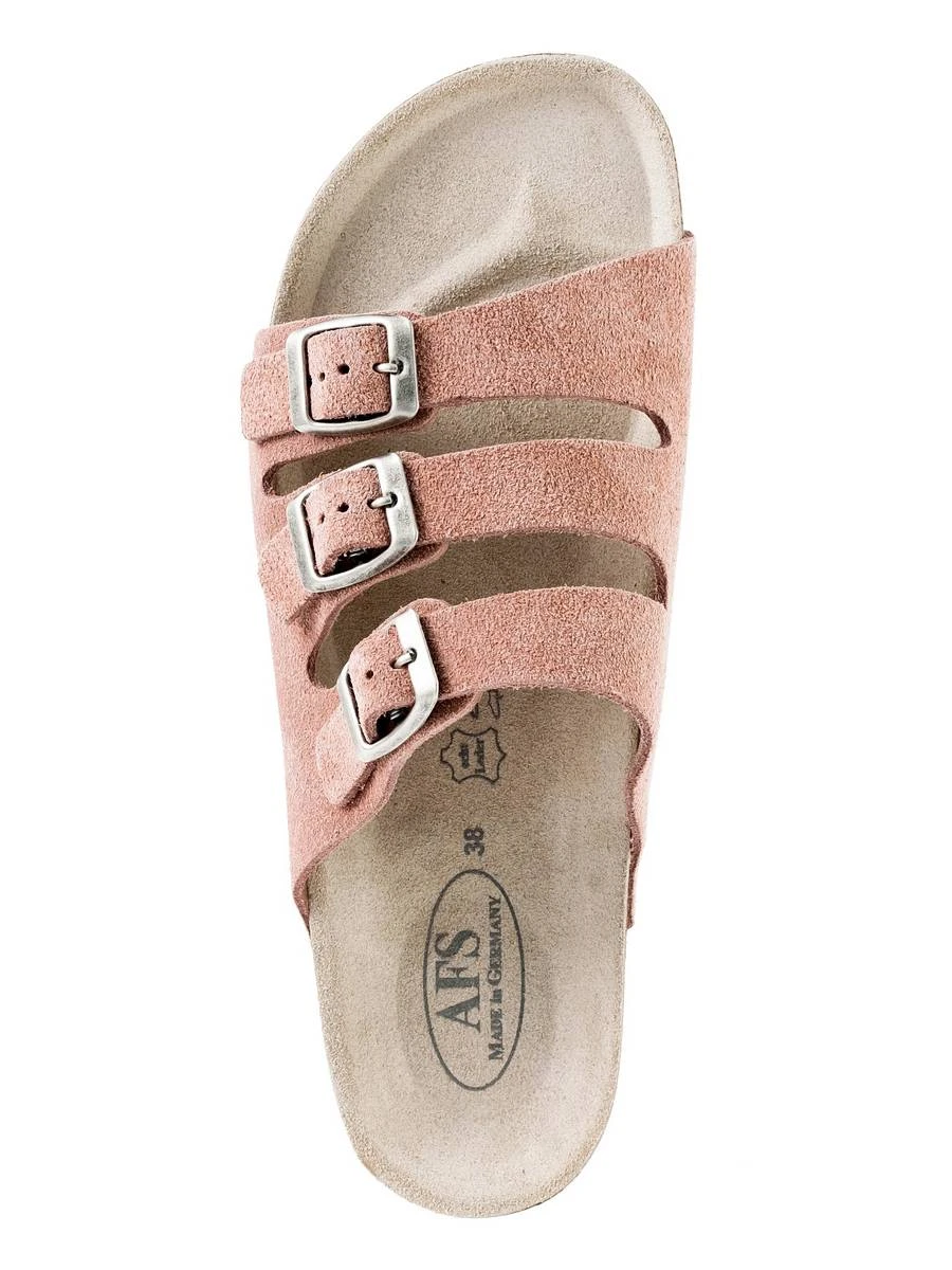 В поисках удобной и стильной летней обуви Вы точно не пропустите замшевые сабо на регулируемых ремешках с пряжками. Универсальность модели из линейки AFS неоспорима благодаря анатомически правильной стельке и трендовому дизайну. Розовые сабо с пряжками в оттенке матовое серебро - это о солнечных днях и увлекательных прогулках. Стильные женские сабо легко адаптировать к городскому, пляжному и расслабленному летнему силуэту. Сегодня модель актуально смотрится как на носок, так и на голую ногу.