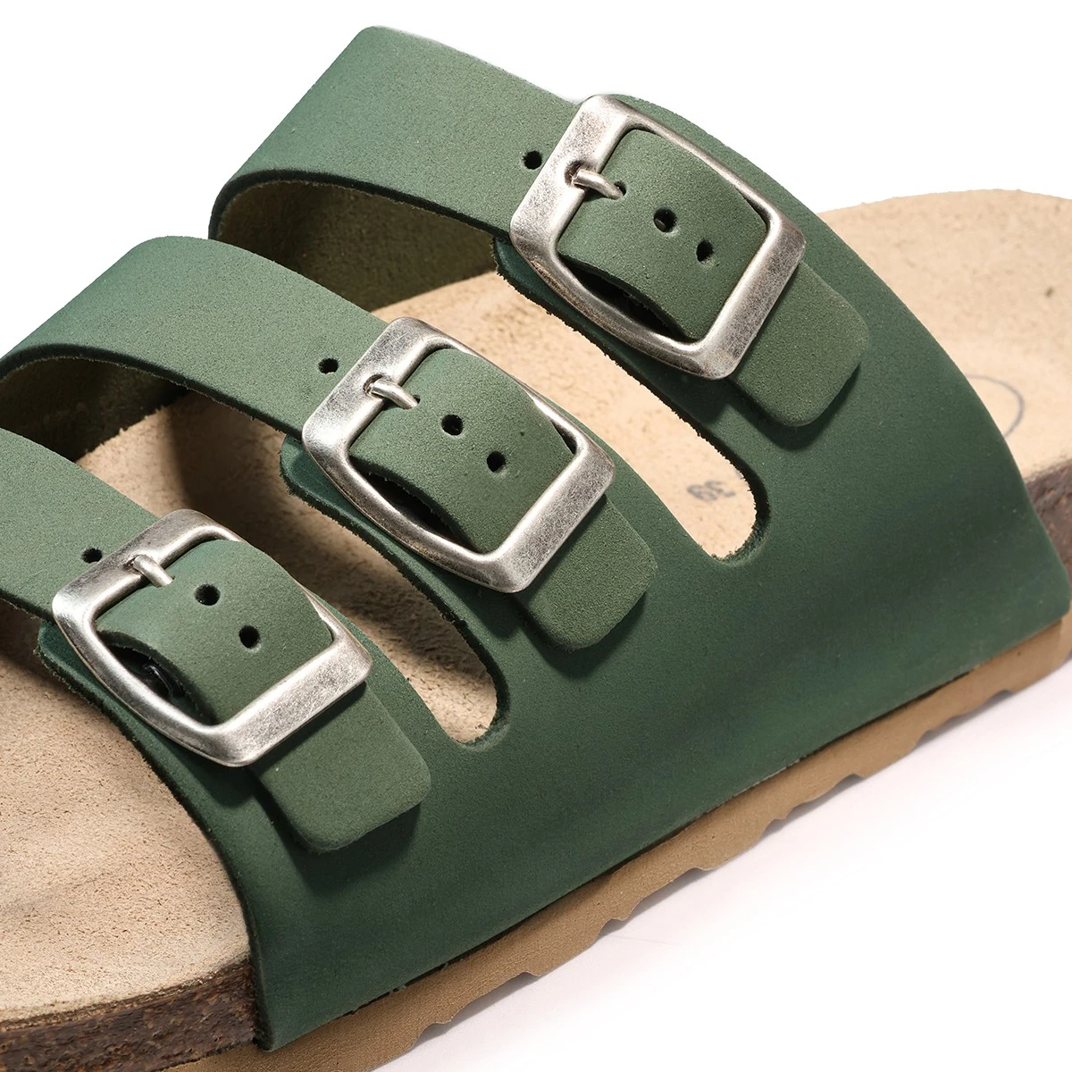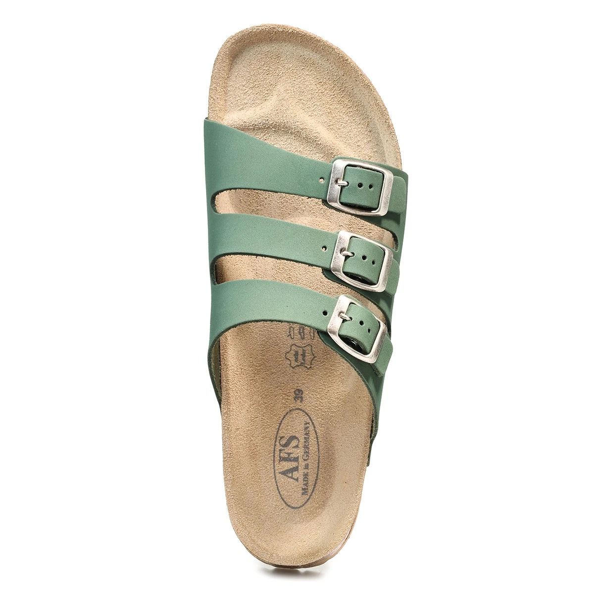 В поисках удобной и стильной летней обуви Вы точно не пропустите сабо из натурального нубука на регулируемых ремешках с пряжками. Универсальность модели из линейки AFS неоспорима благодаря анатомически правильной стельке и трендовому дизайну. Зеленые сабо с пряжками в оттенке “глянцевое серебро” - это о солнечных днях и увлекательных прогулках. Стильные женские сабо легко адаптировать к городскому, пляжному и расслабленному летнему силуэту. Сегодня модель актуально смотрится как на носок, так и на голую ногу.
