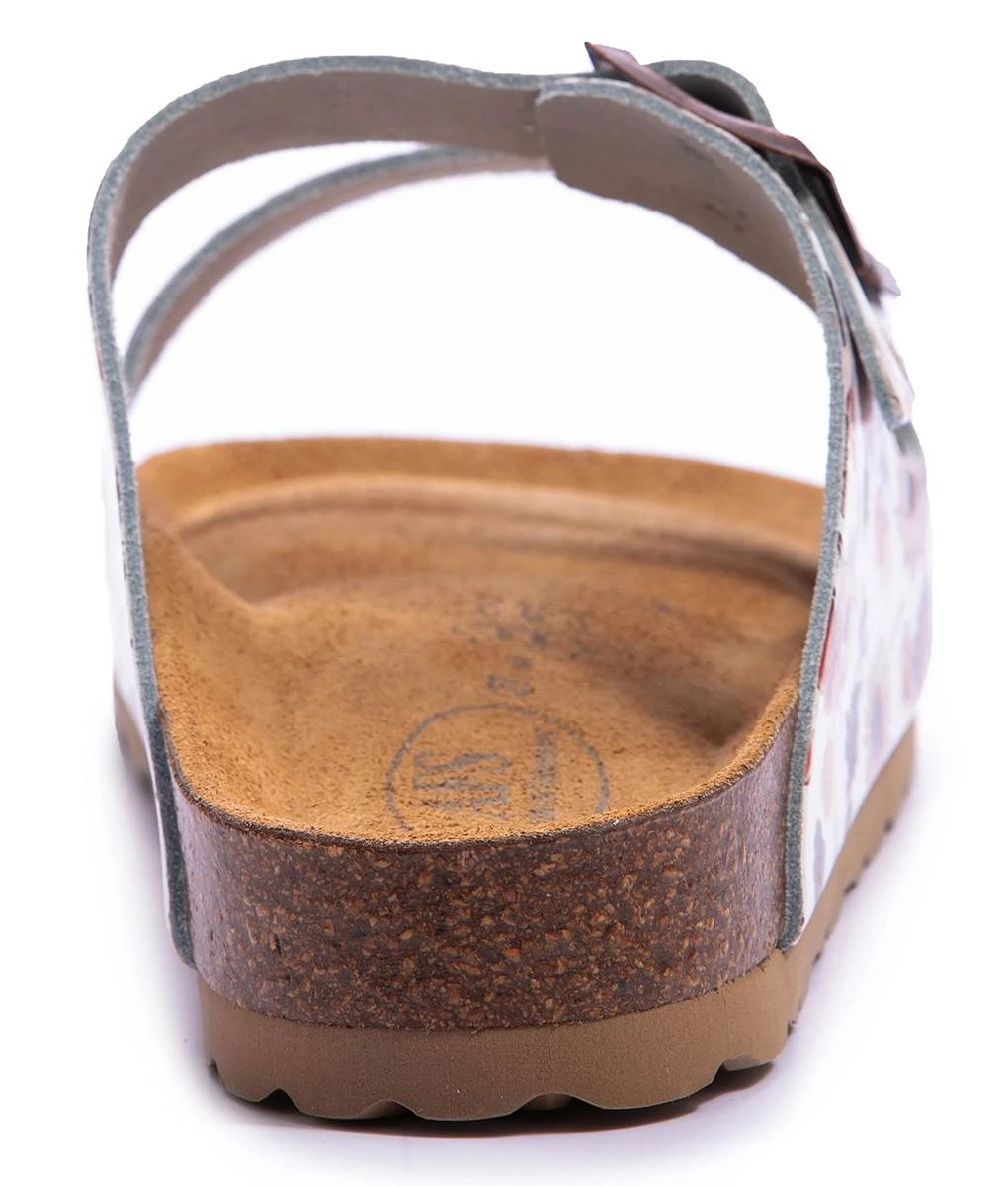 Уникальная анатомическая стелька выполнена из коры пробкового дуба со слоем из вспененного материала и финишем из натуральной кожи велюровой выделки. Форма стельки повторяет отпечаток здоровой стопы на песке, поддерживает своды стопы, пальцы и пятку в анатомически правильном положении, снимая усталость. Оригинальная анатомическая стелька AFS оснащена разделителем пальцев для их естественного положения, углублением в пяточной области для устойчивости при ходьбе и бортиком по периметру для фиксации ноги в правильном положении. Стелька из пробкового дуба гасит ударные нагрузки на суставы ног и позвоночник. Покрытие стельки из натуральной кожи сохраняет стопы сухими и препятствует скольжению ноги внутри обуви, что очень важно в летний период.