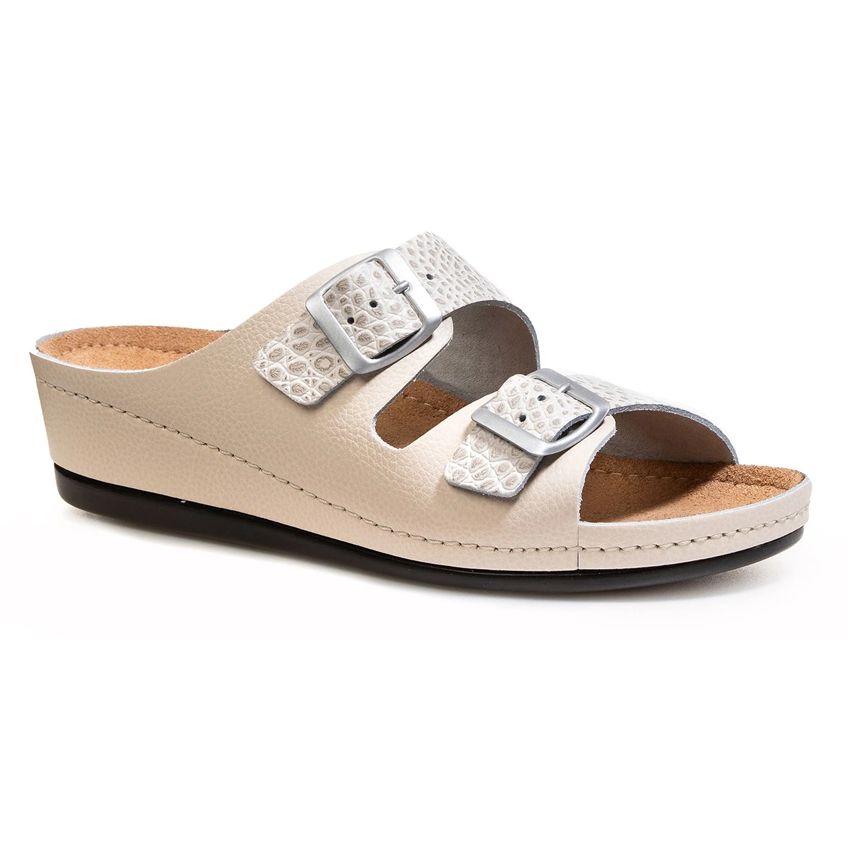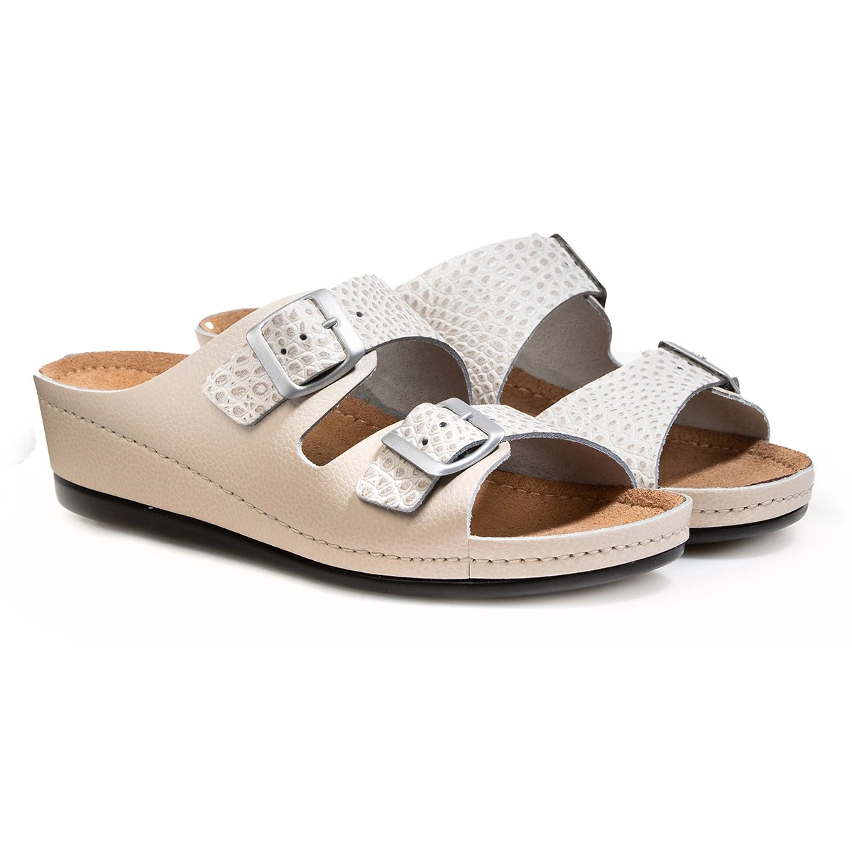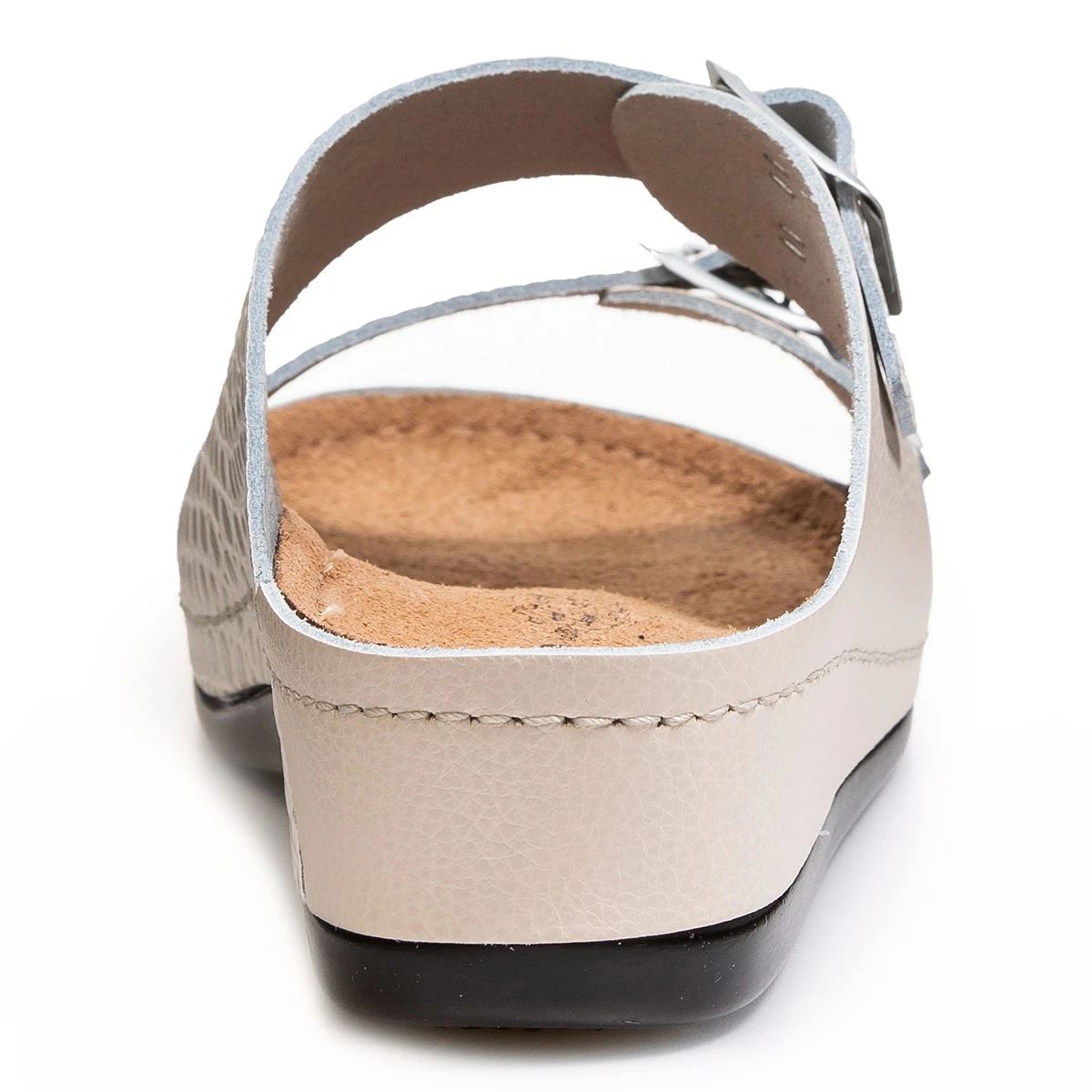 - двойная застежка на регулируемых пряжках обеспечивает полную раскрываемость сабо для максимального удобства обувания;