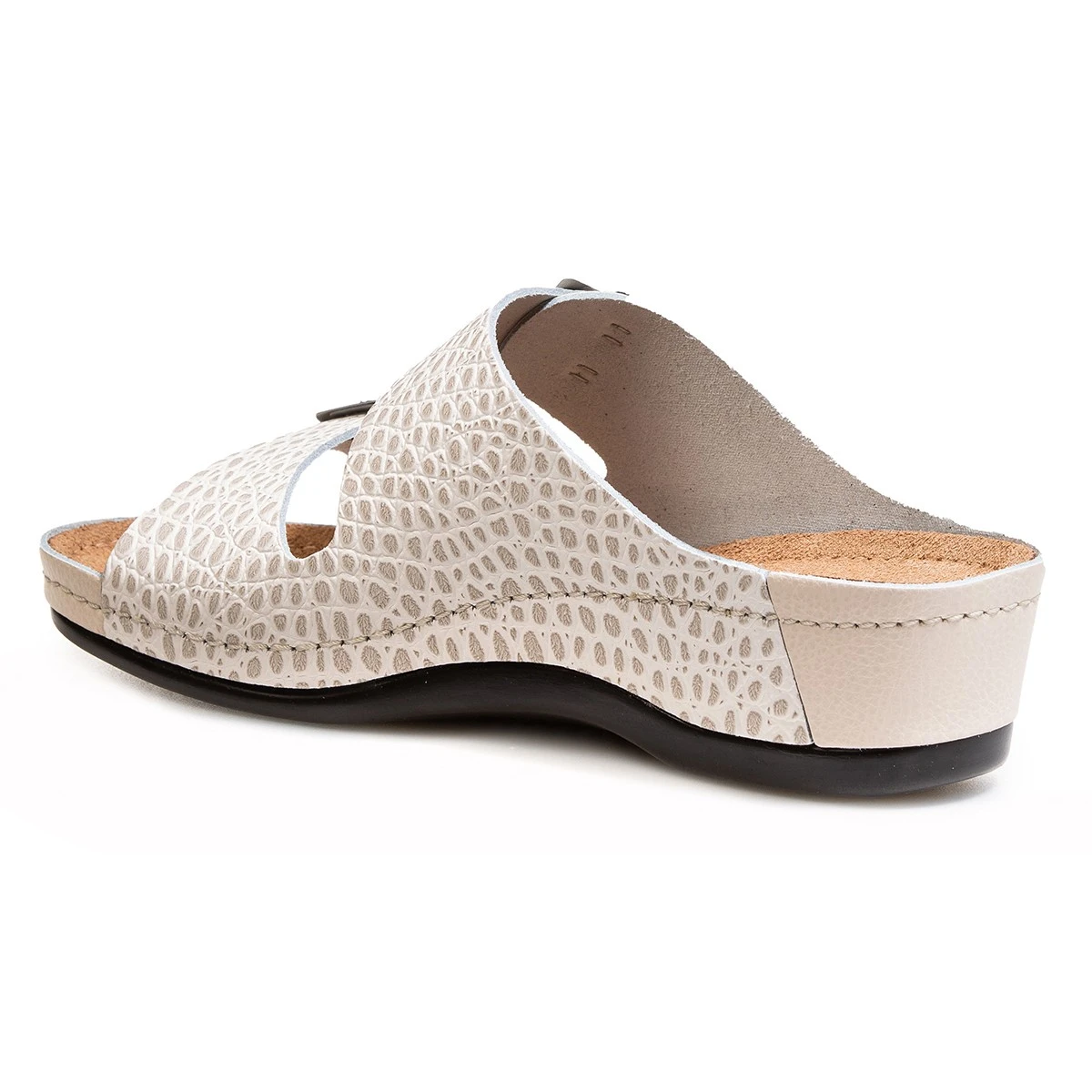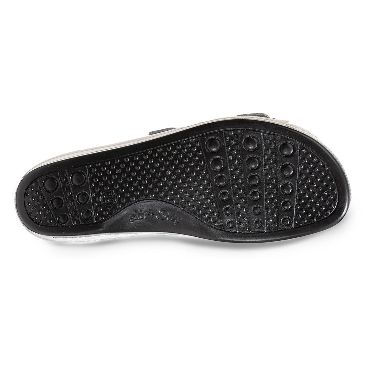 Уникальная анатомическая стелька из полиуретана с воздушными подушками повторяет отпечаток здоровой стопы на песке, поддерживает своды стопы, пальцы и пятку в анатомически правильном положении, снимая усталость. Оригинальная анатомическая стелька AFS оснащена разделителем пальцев для их естественного положения, углублением в пяточной области для устойчивости при ходьбе и бортиком по периметру для фиксации ноги в правильном положении. Стелька из полиуретана с воздушными подушками гасит ударные нагрузки на суставы ног и позвоночник. Покрытие стельки из натуральной кожи велюровой выделки сохраняет стопы сухими и препятствует скольжению ноги внутри обуви, что очень важно в летний период.