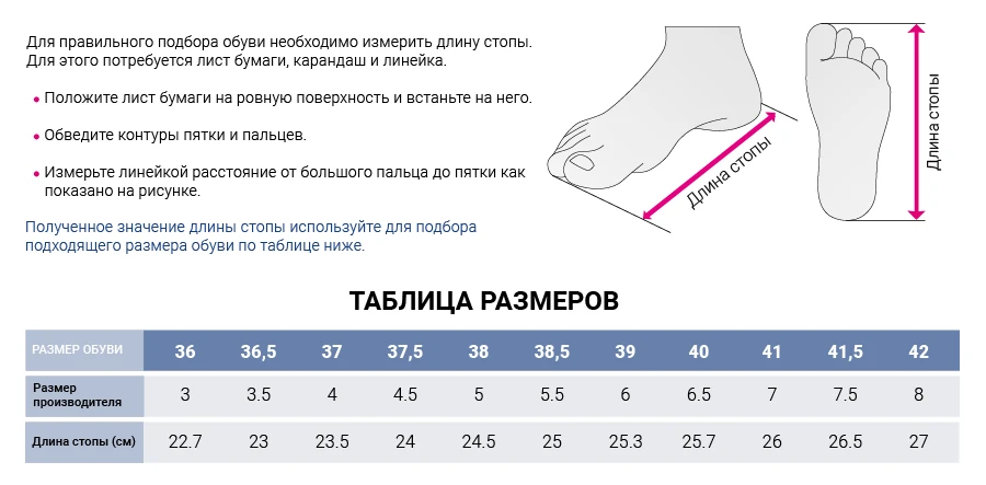 - Широкая носочная часть обеспечивает естественное расположение пальцев стопы, предотвращая деформацию суставов пальцев.