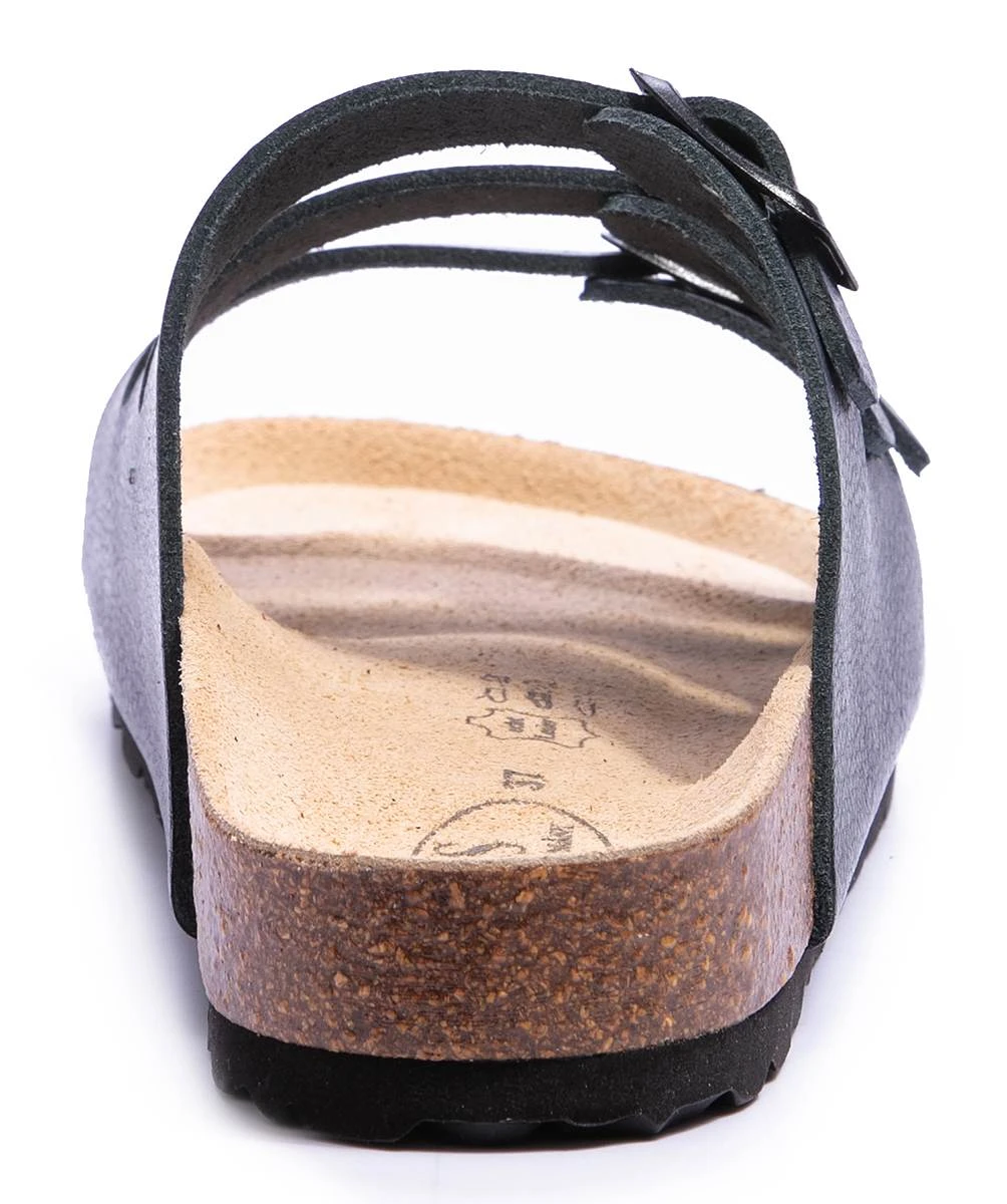 Уникальная анатомическая стелька выполнена из коры пробкового дуба и финишем из натуральной кожи велюровой выделки. Форма стельки повторяет отпечаток здоровой стопы на песке, поддерживает своды стопы, пальцы и пятку в анатомически правильном положении, снимая усталость. Оригинальная анатомическая стелька AFS оснащена разделителем пальцев для их естественного положения, углублением в пяточной области для устойчивости при ходьбе и бортиком по периметру для фиксации ноги в правильном положении. Стелька из пробкового дуба гасит ударные нагрузки на суставы ног и позвоночник. Покрытие стельки из натуральной кожи сохраняет стопы сухими и препятствует скольжению ноги внутри обуви, что очень важно в летний период.