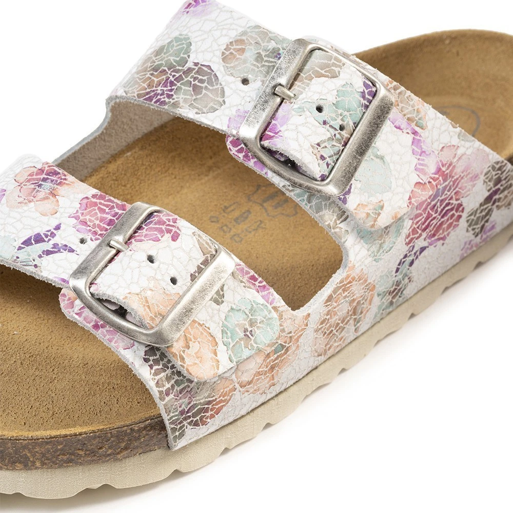 - двойная застежка на регулируемых пряжках обеспечивает полную раскрываемость сабо для максимального удобства обувания;