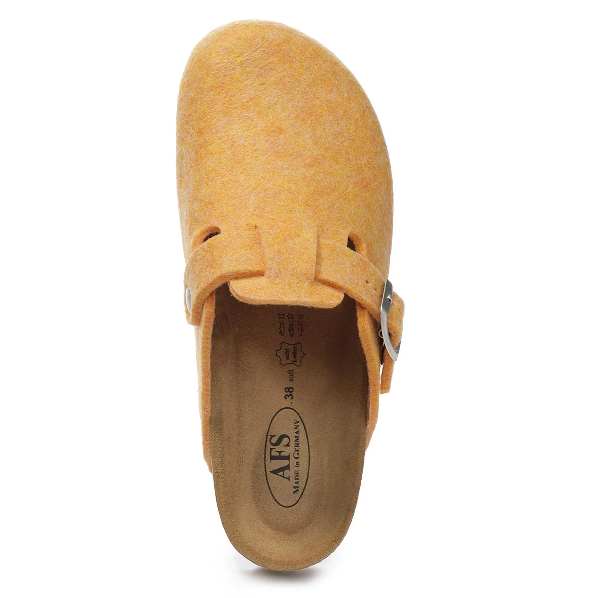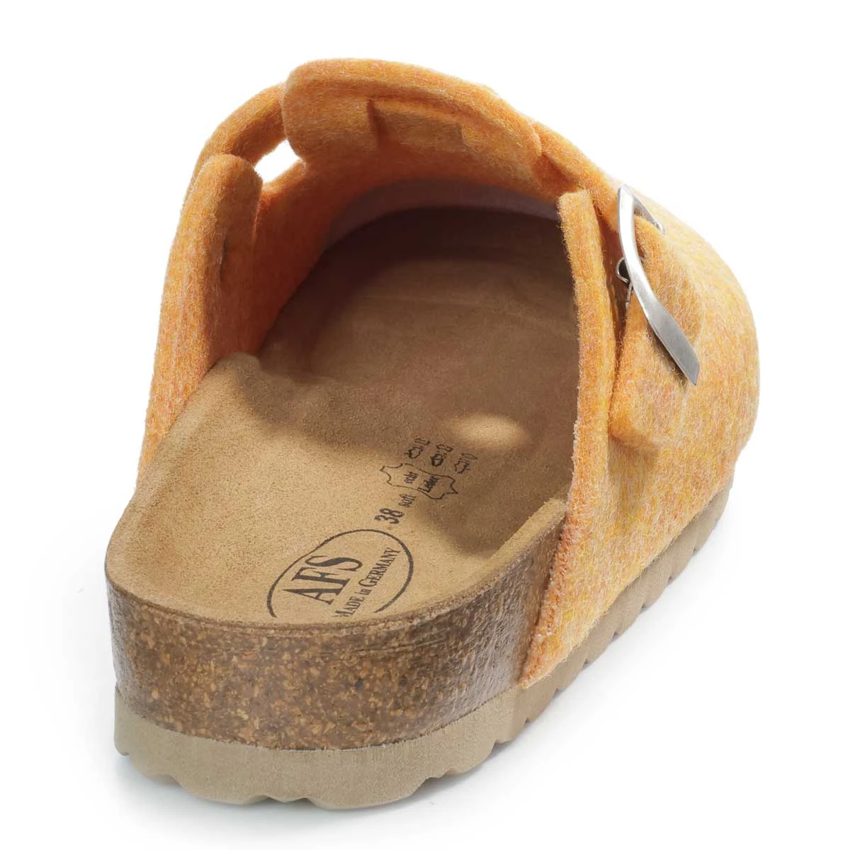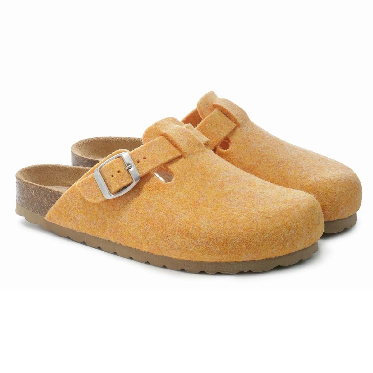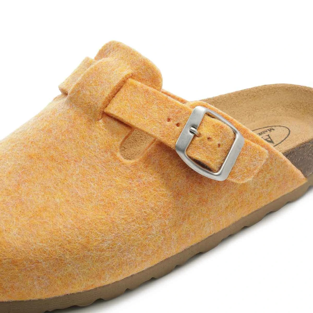 Женские домашние клоги в нежно-оранжевом цвете сразу привлекают к себе внимание! Эта пара выполнена из натурального войлока с регулировкой в подъеме. Материал верха дышащий и при этом хорошо сохраняющий тепло. Металлическая фурнитура цвета состаренного серебра не содержит никель и кадмий и является гипоаллергенной.