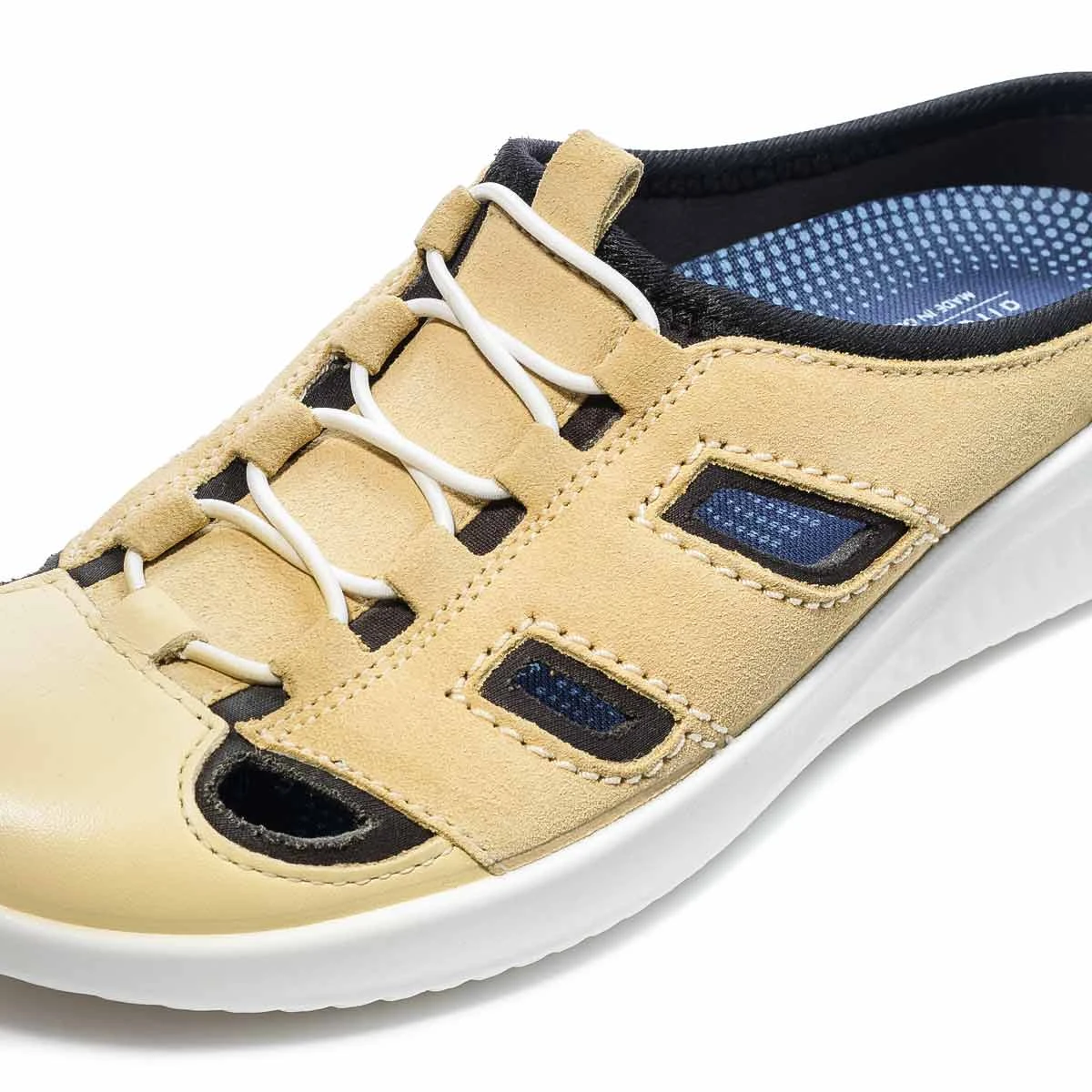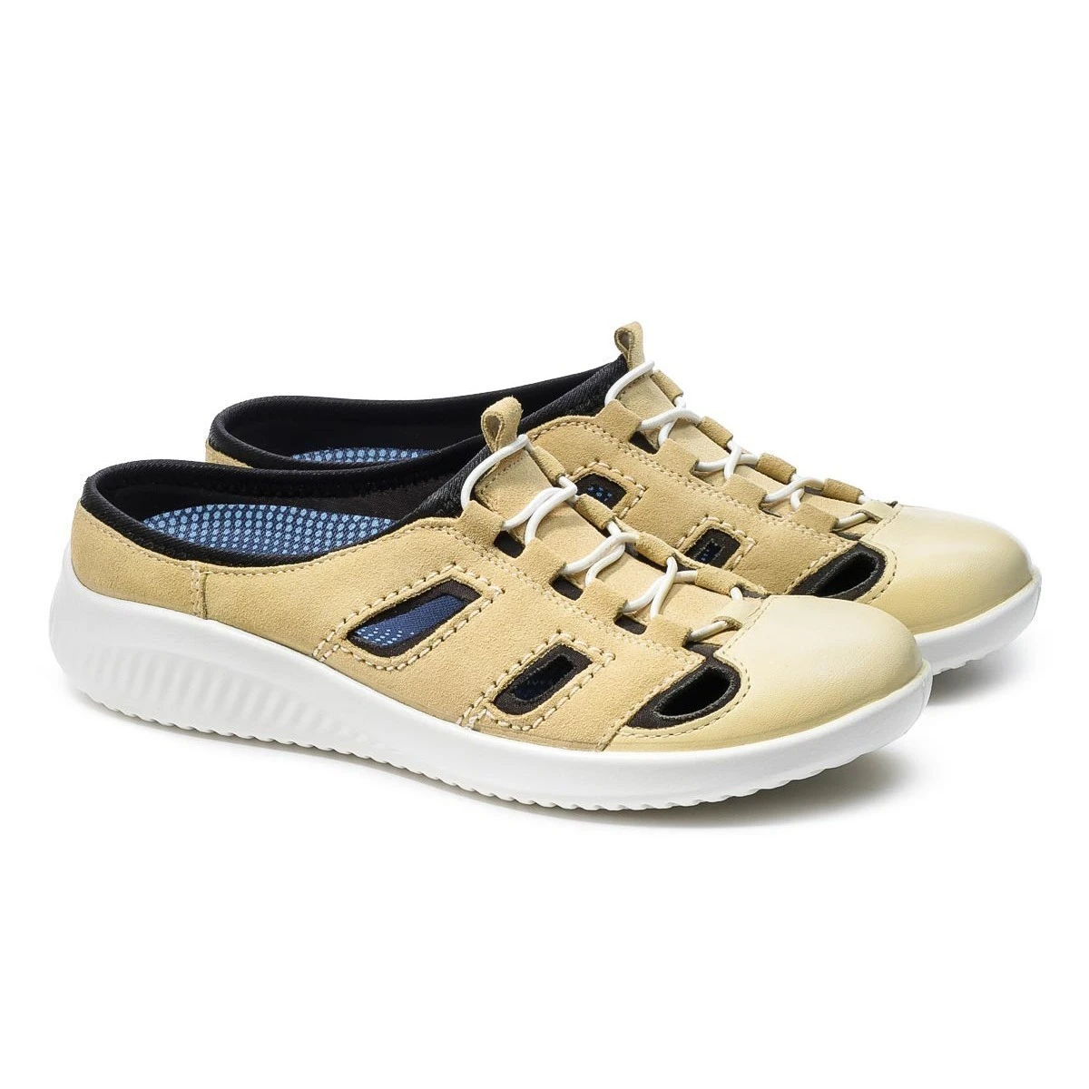 Лимонные сабо в широкой полноте имеют закрытый нос и фигурные вырезы, что одновременно защищает пальцы и обеспечивает полную вентиляцию стопы! Обувь подходит не только для летнего сезона, но и в качестве сменной обуви круглый год.