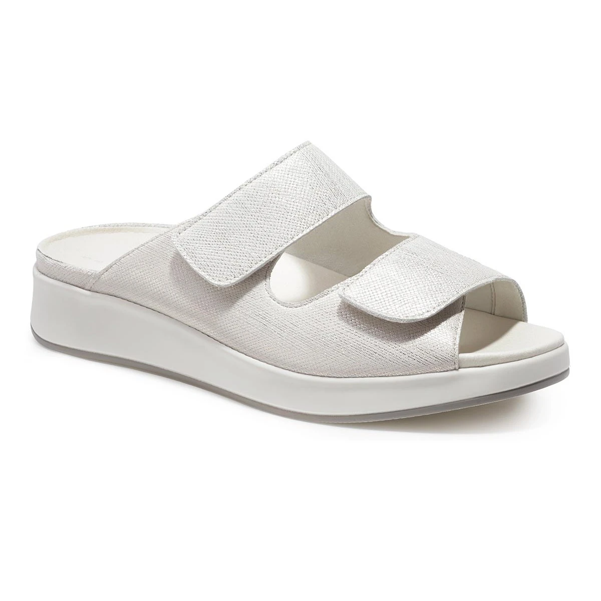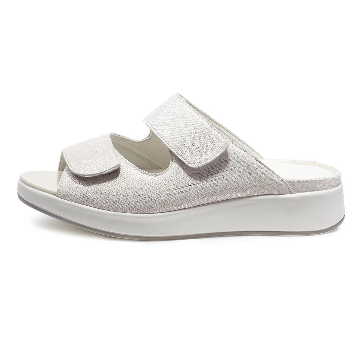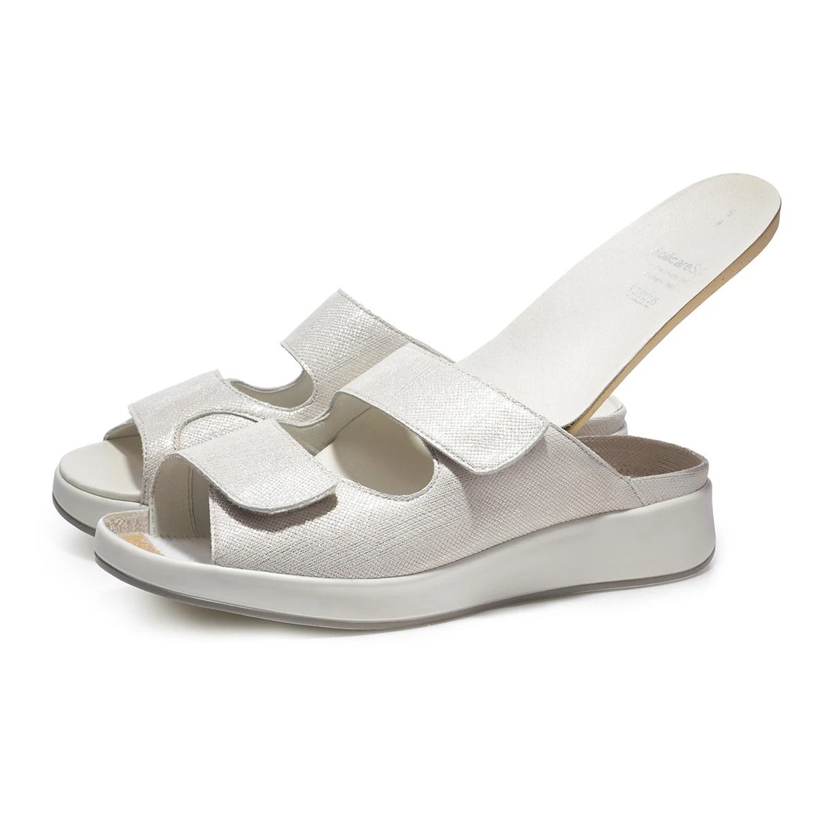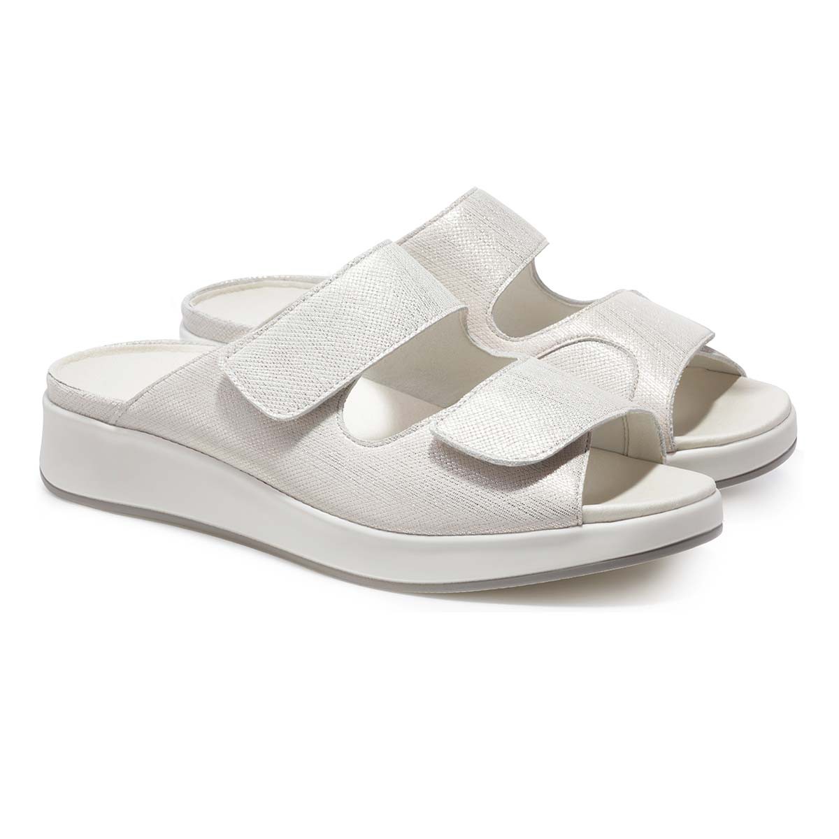 Кожаные сабо с деликатным золотистым блеском выполнены на колодке Hannah в увеличенной полноте Н. Эта стильная и удобная модель подойдет для дома и летних прогулок. Эластичная вставка из материала Nappaflex в области сустава большого пальца снимает давление с деформированных участков стопы.