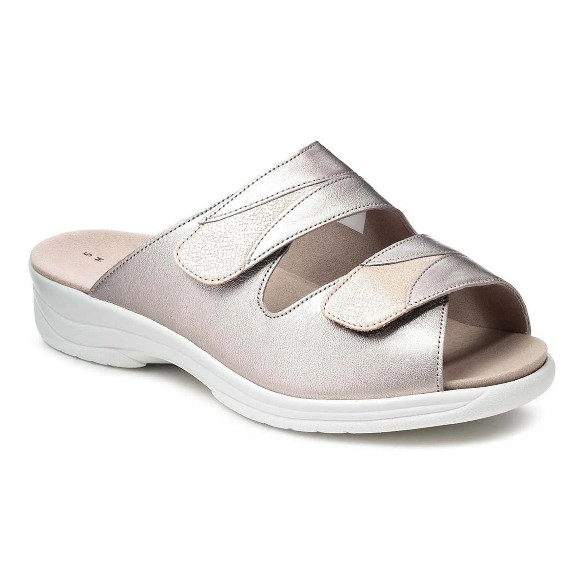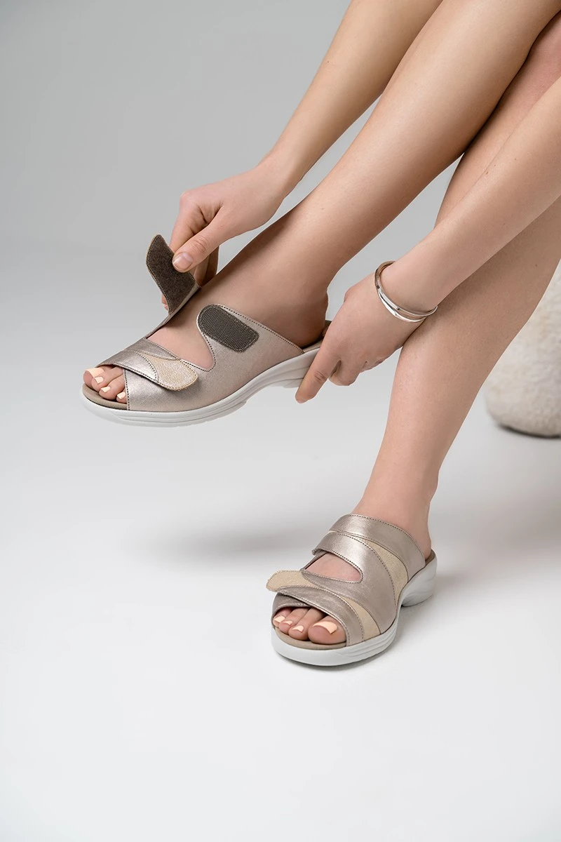 Женские сабо в очень широкой полноте обеспечивают полную раскрываемость при помощи двух широких регулируемых ремешков с эргономичной застежкой велкро. Модель на застежках-липучках легко надеть и отрегулировать по стопе. Верх модели выполнен из натуральной кожи.