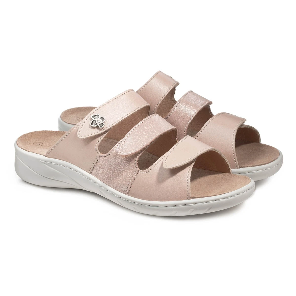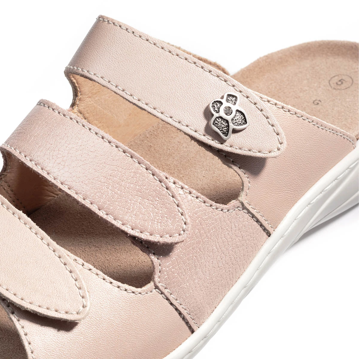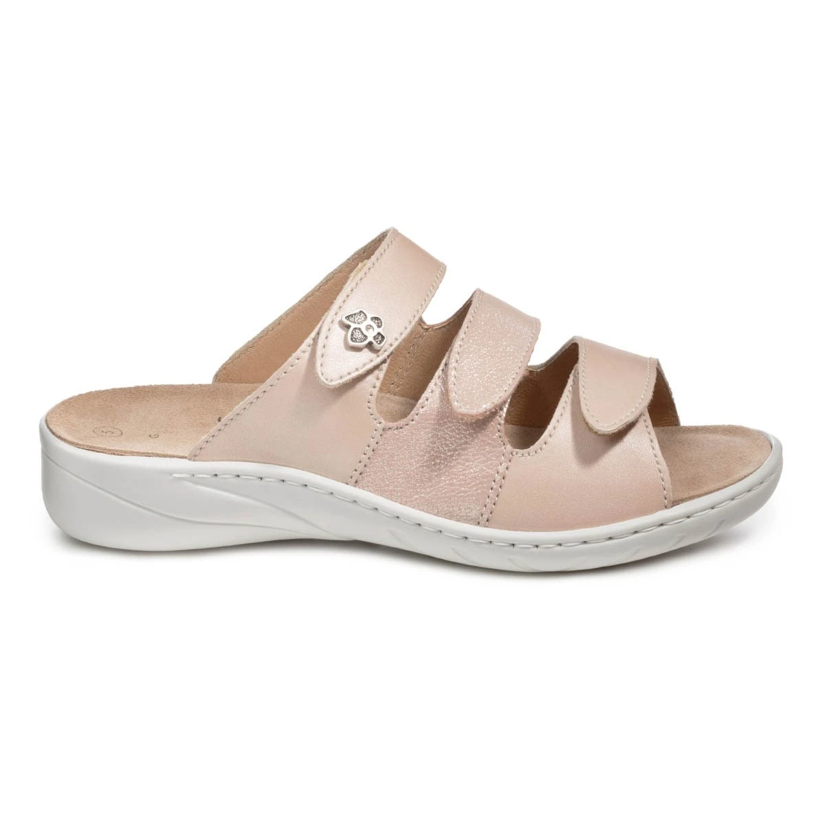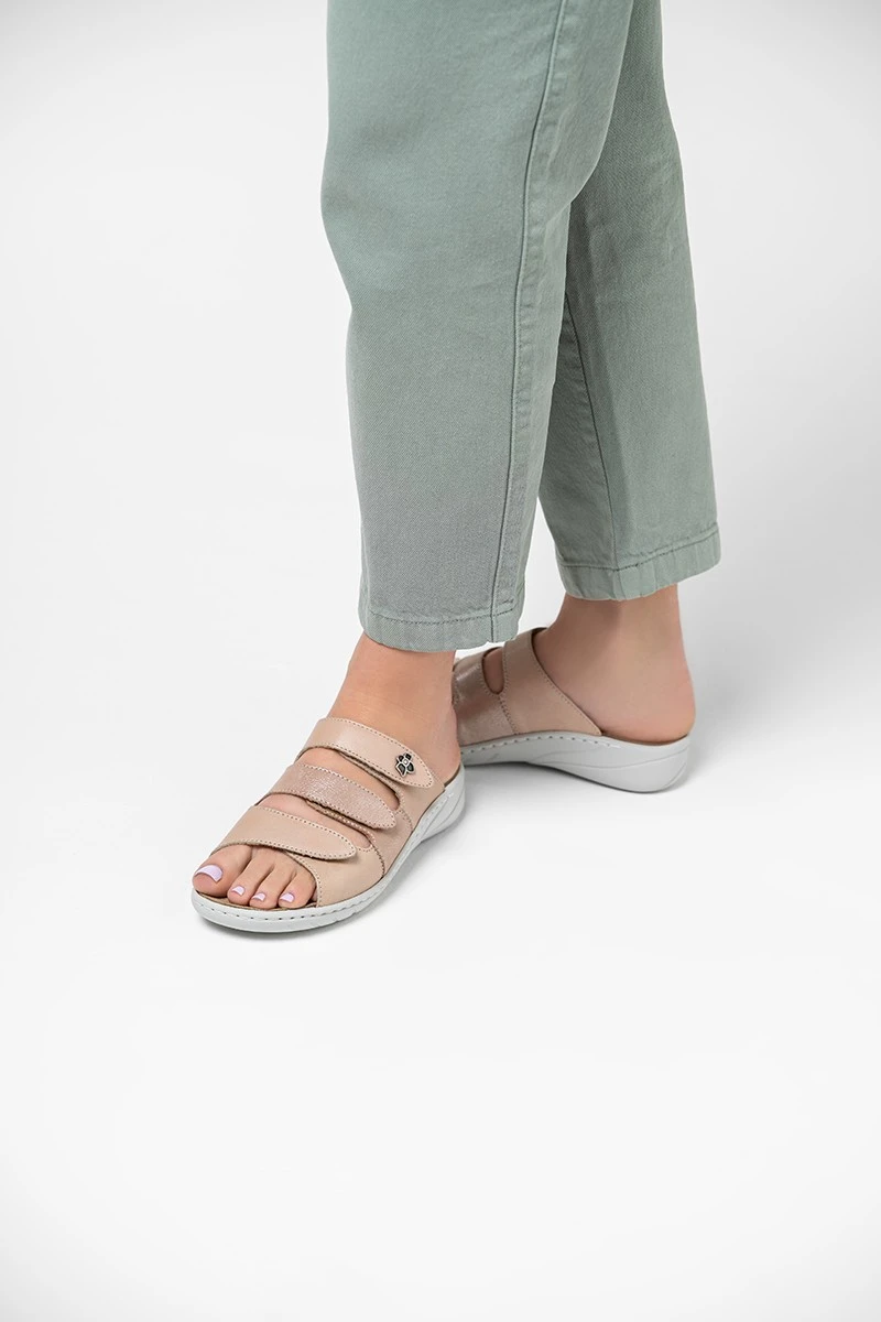 Классические женские сабо с тремя регулирующими ремешками в нежном пудрово-розовом оттенке станут любимой парой в вашем летнем гардеробе. Модель выполнена из натуральной кожи и подходит на стопу без особых деформаций. Благодаря эргономичным застежкам велкро обувь полностью раскрывается, что облегчает ее надевание и регулировку по стопе.