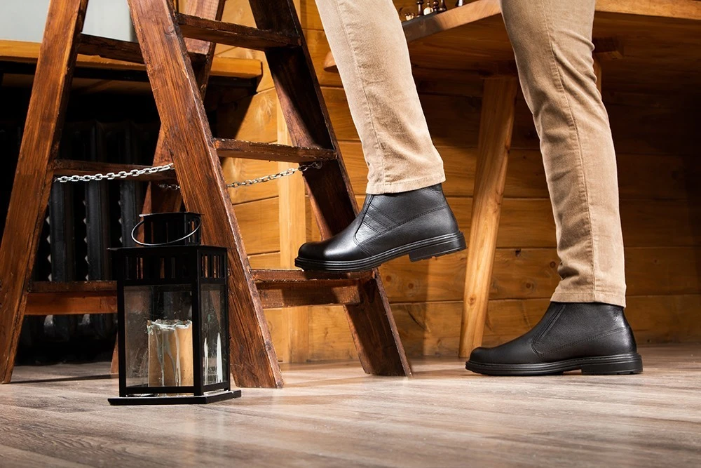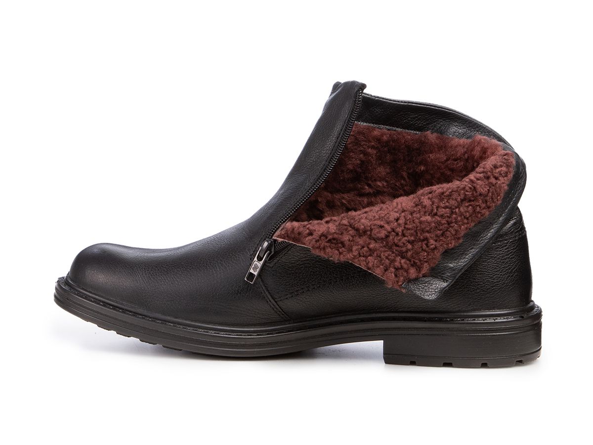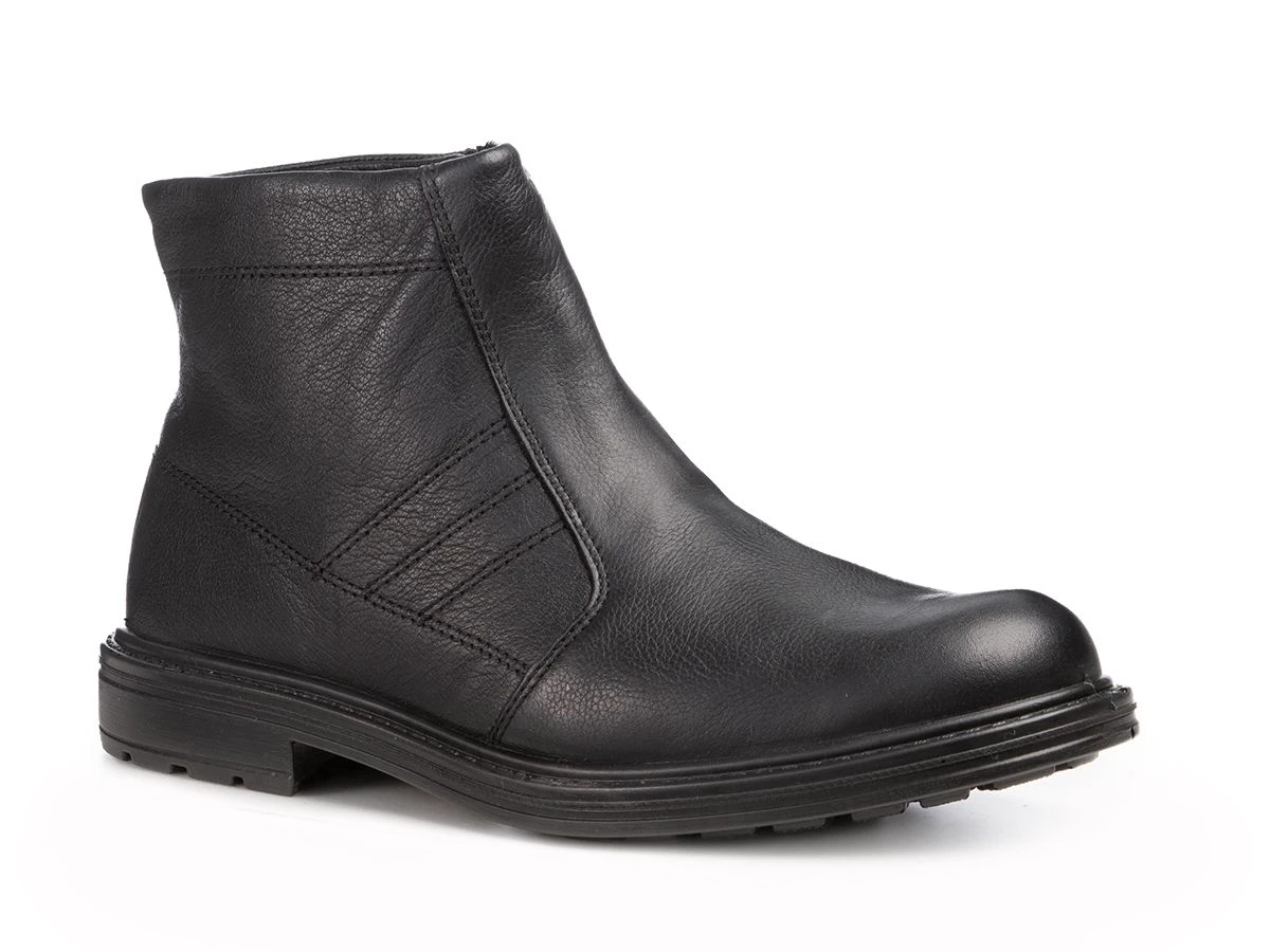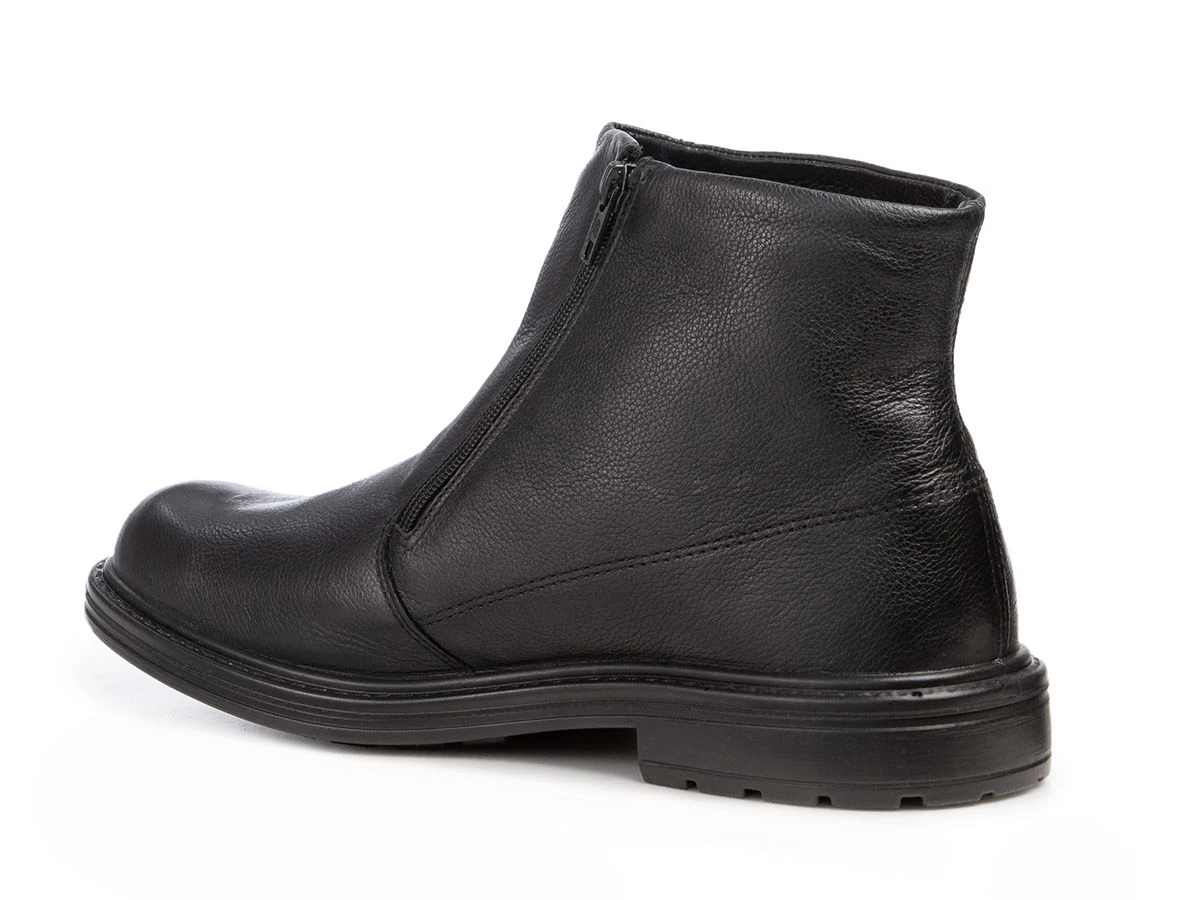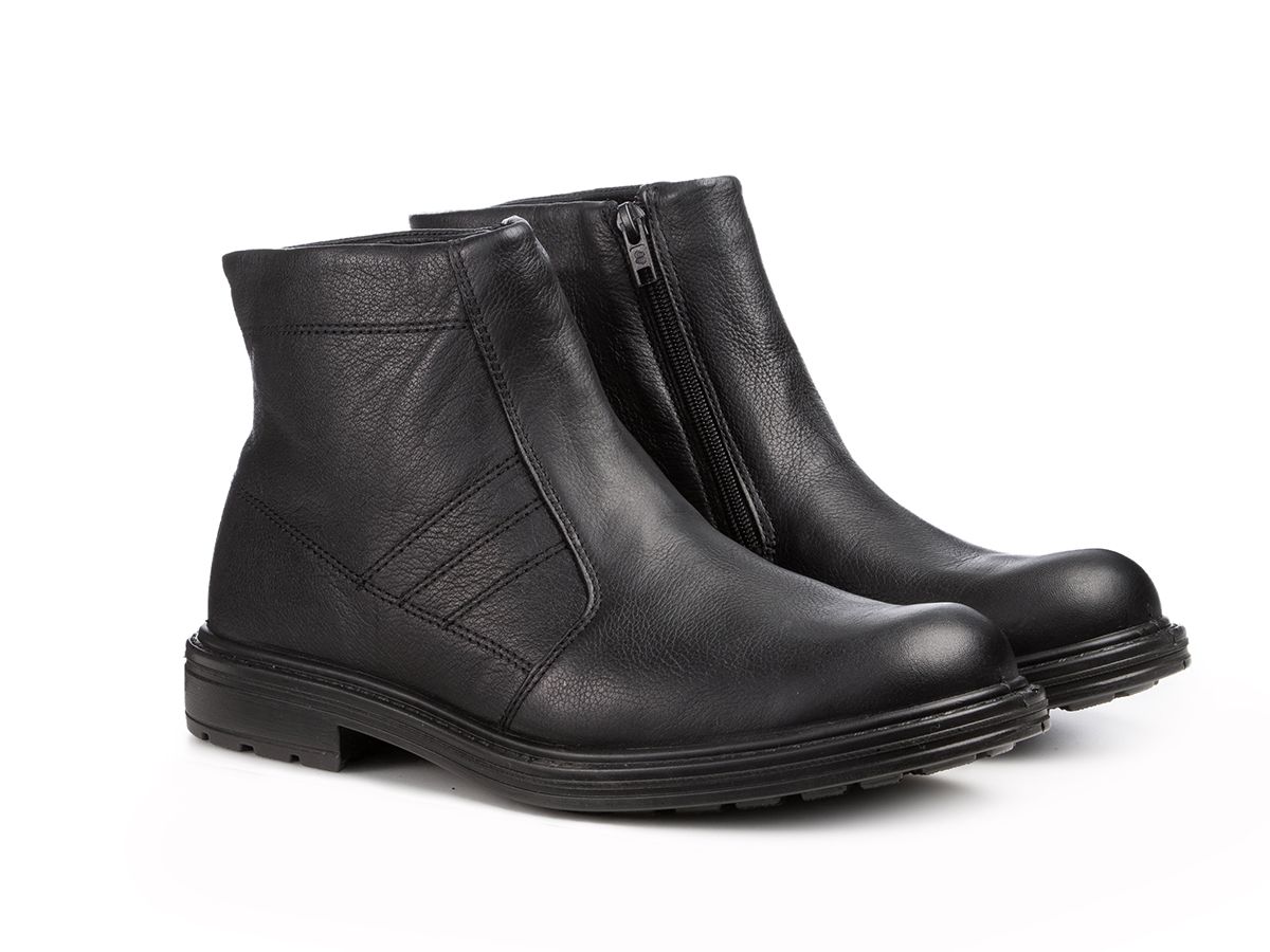 Мужские ботинки на молнии в классическом стиле немецкого бренда Jomos из прочной зернистой кожи черного цвета невероятно удобные, благодаря воздушной подошве и выверенной колодке с встроенным подпяточником. Особенно подойдут со строгими брюками.