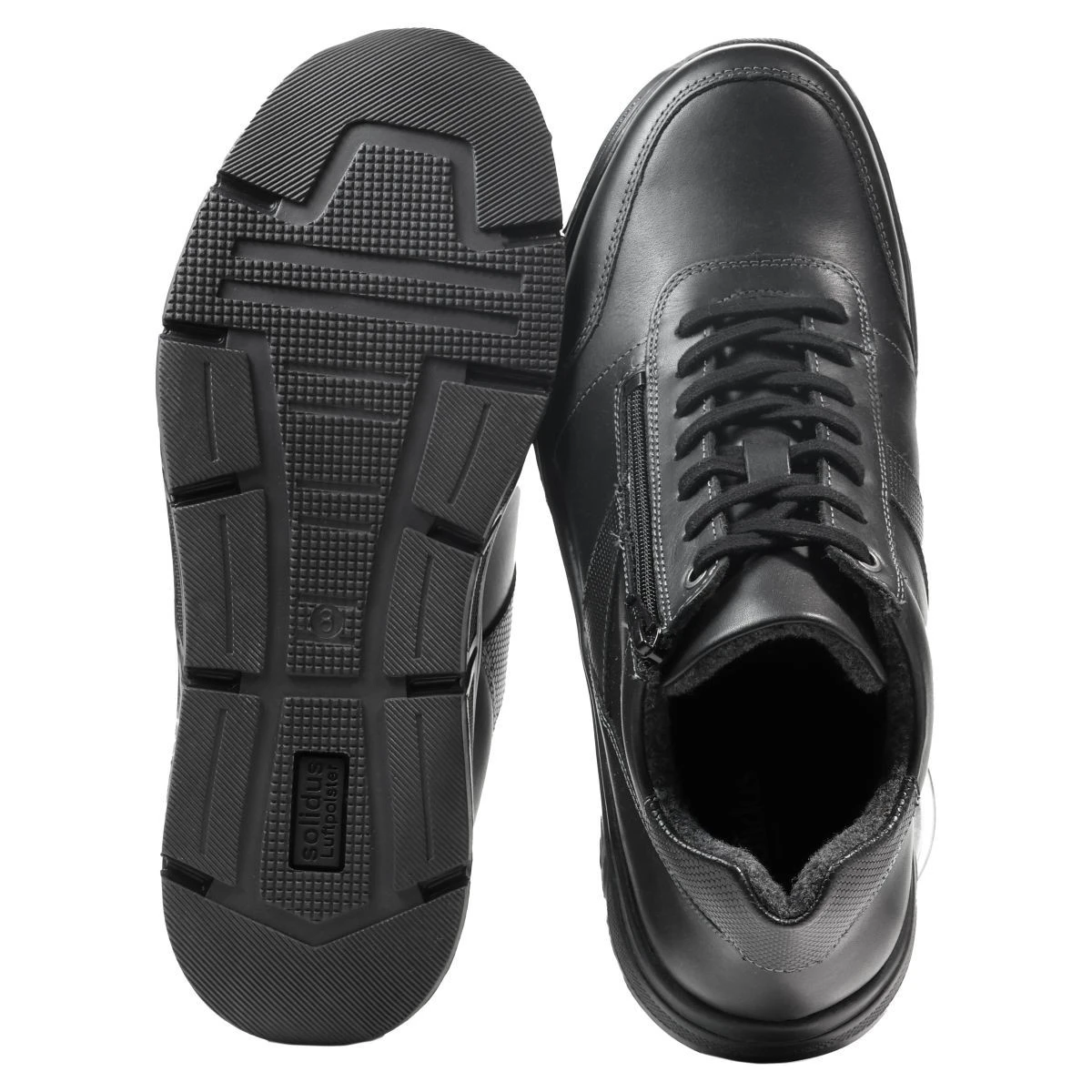 Городские ботинки Solidus на колодке Kai с подкладкой из хлопка имеют широкую полноту. В них достаточно места для пальцев, а подошва с воздушными подушками делает шаг легким и мягким.