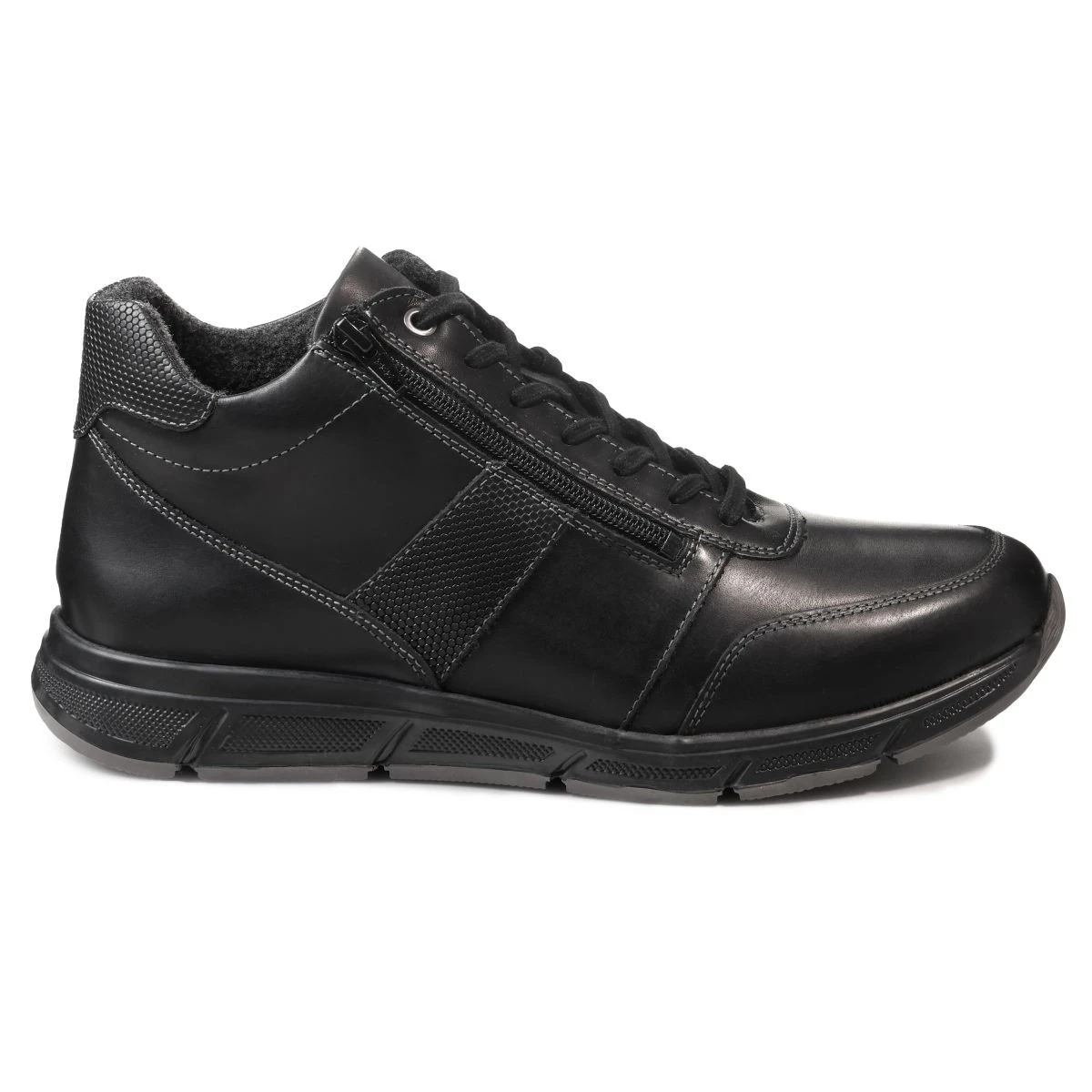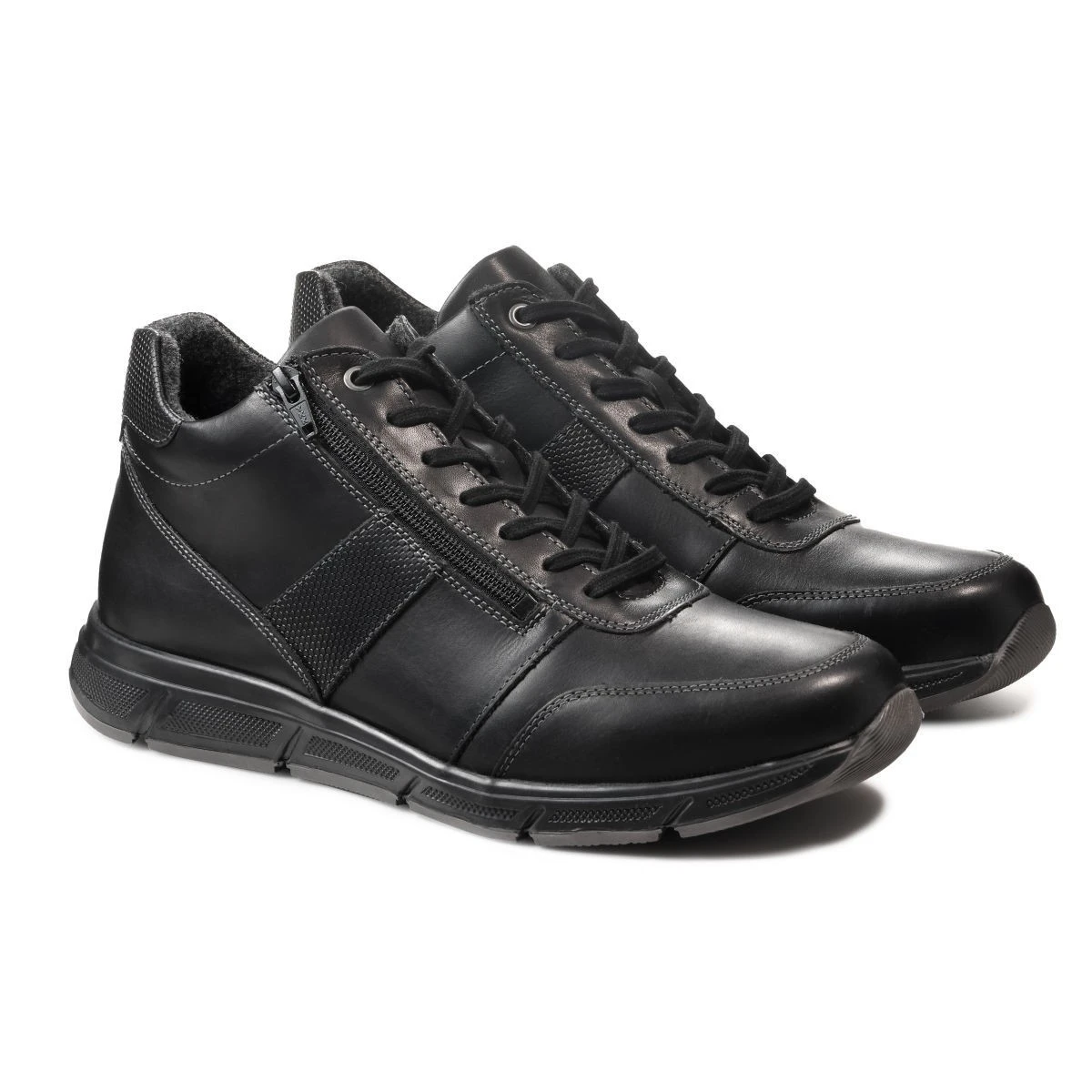 - Двойная система фиксации: шнурки не нужно постоянно завязывать — вы завязываете их один раз, а дальше легко надеваете и снимаете при помощи молнии.