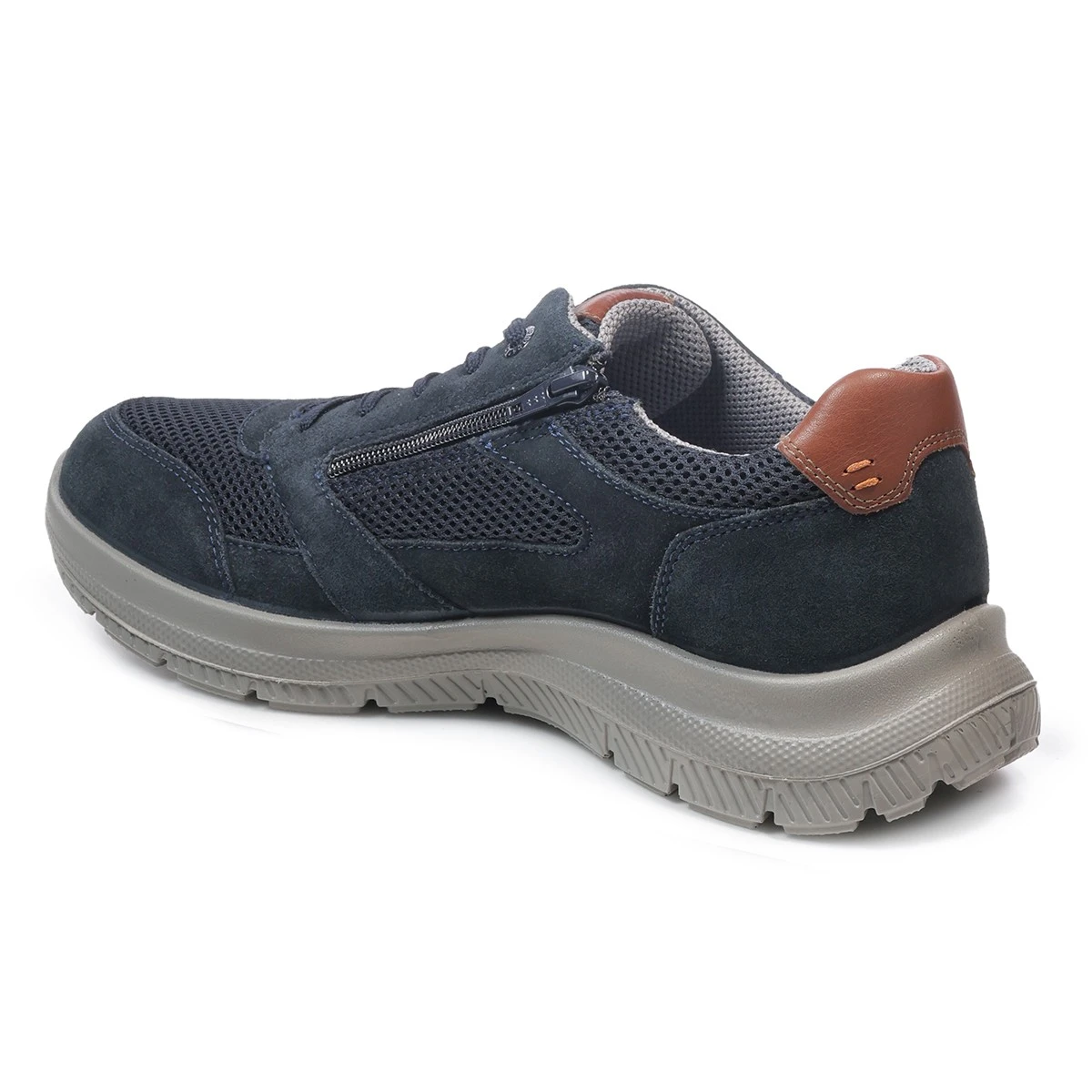 Замшевые кроссовки на шнуровке и молнии в нейтральном синем оттенке сегодня приобретают новое прочтение, становясь современной классикой без ограничений в стилизации. Молния быстро и надежно фиксирует обувь, а шнуровка удобно регулируется в соответствии с собственными параметрами ноги.