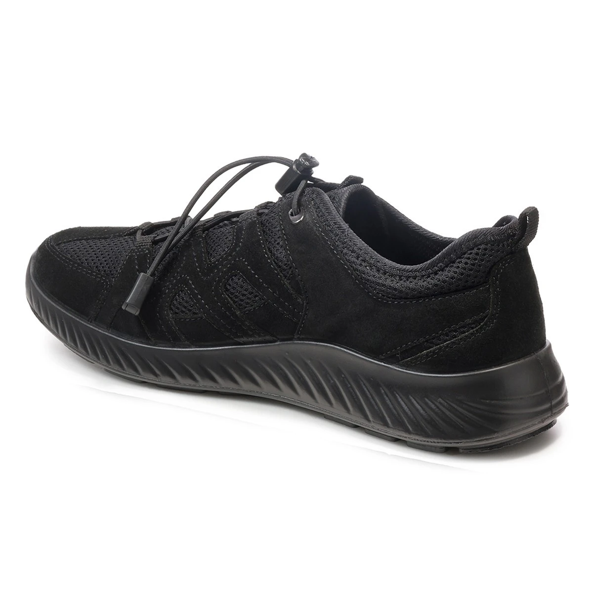 Для дополнительного удобства универсальные черные кроссовки оснащены эластичной шнуровкой с фиксатором, которая быстро и надежно регулируется по собственным параметрам ноги. Гибкая и легкая подошва из полиуретана выполнена по новейшим технологиям, которые гарантируют устойчивость к истиранию, обеспечивают исключительную амортизацию при ходьбе и уменьшают ударные нагрузки на суставы ног и позвоночник.