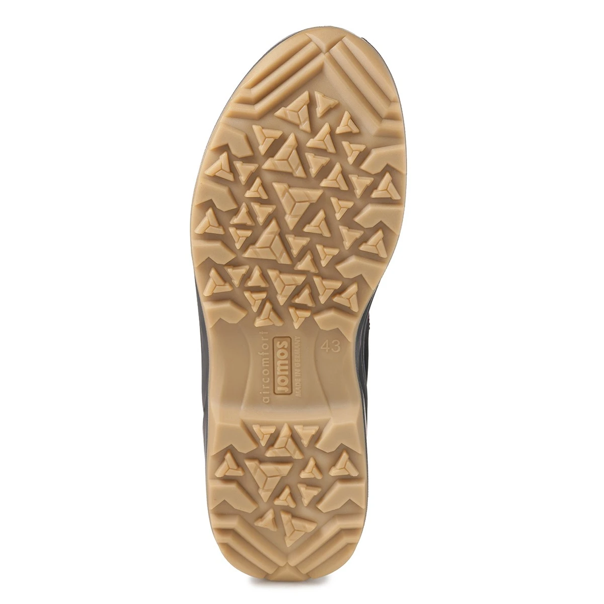 Двухслойная прочная и гибкая полиуретановая подошва собственной разработки Jomos поглощает удары при ходьбе, снимая нагрузку с суставов ног и позвоночника; нижний противоскользящий слой подошвы обеспечивает превосходное сцепление на любой скользкой поверхности.