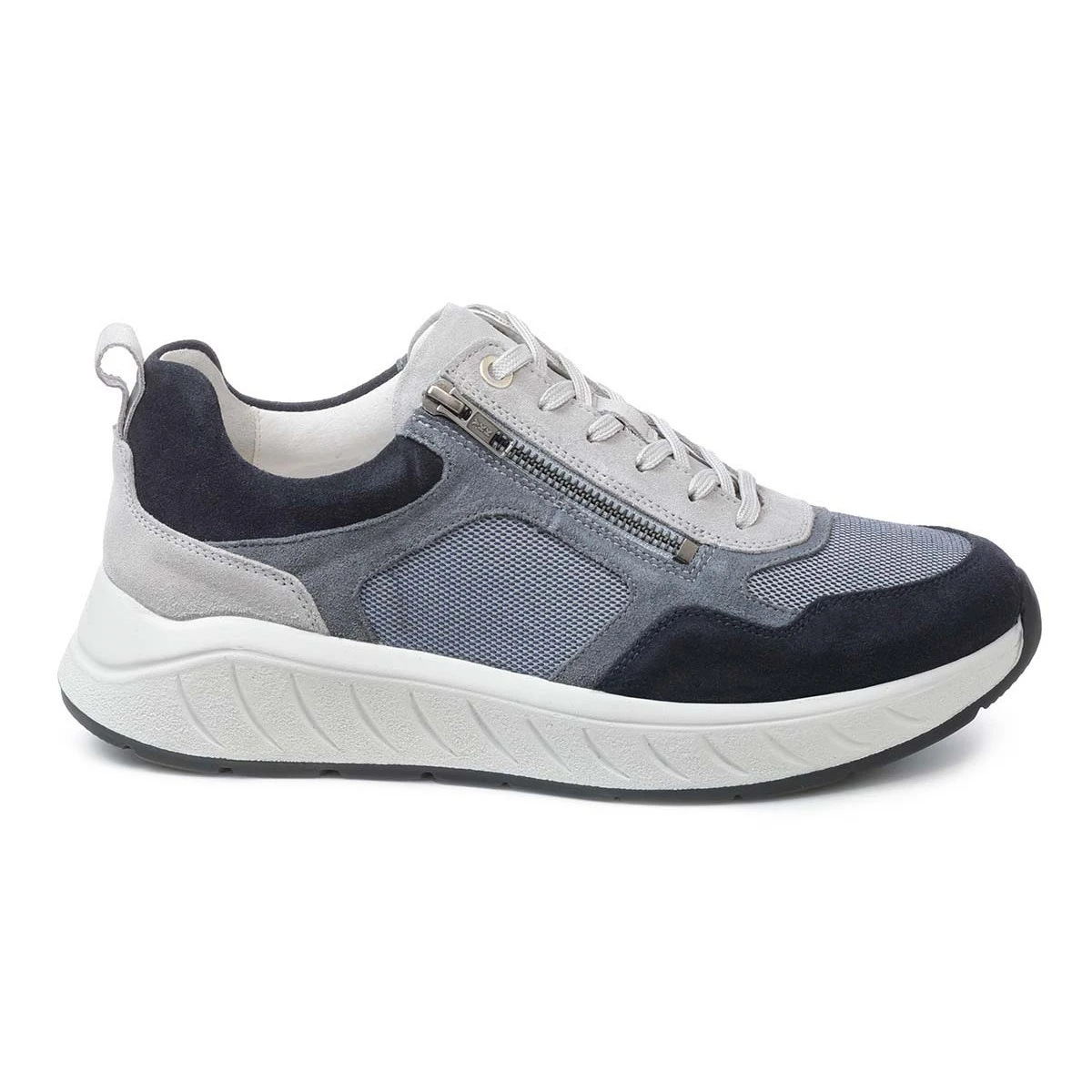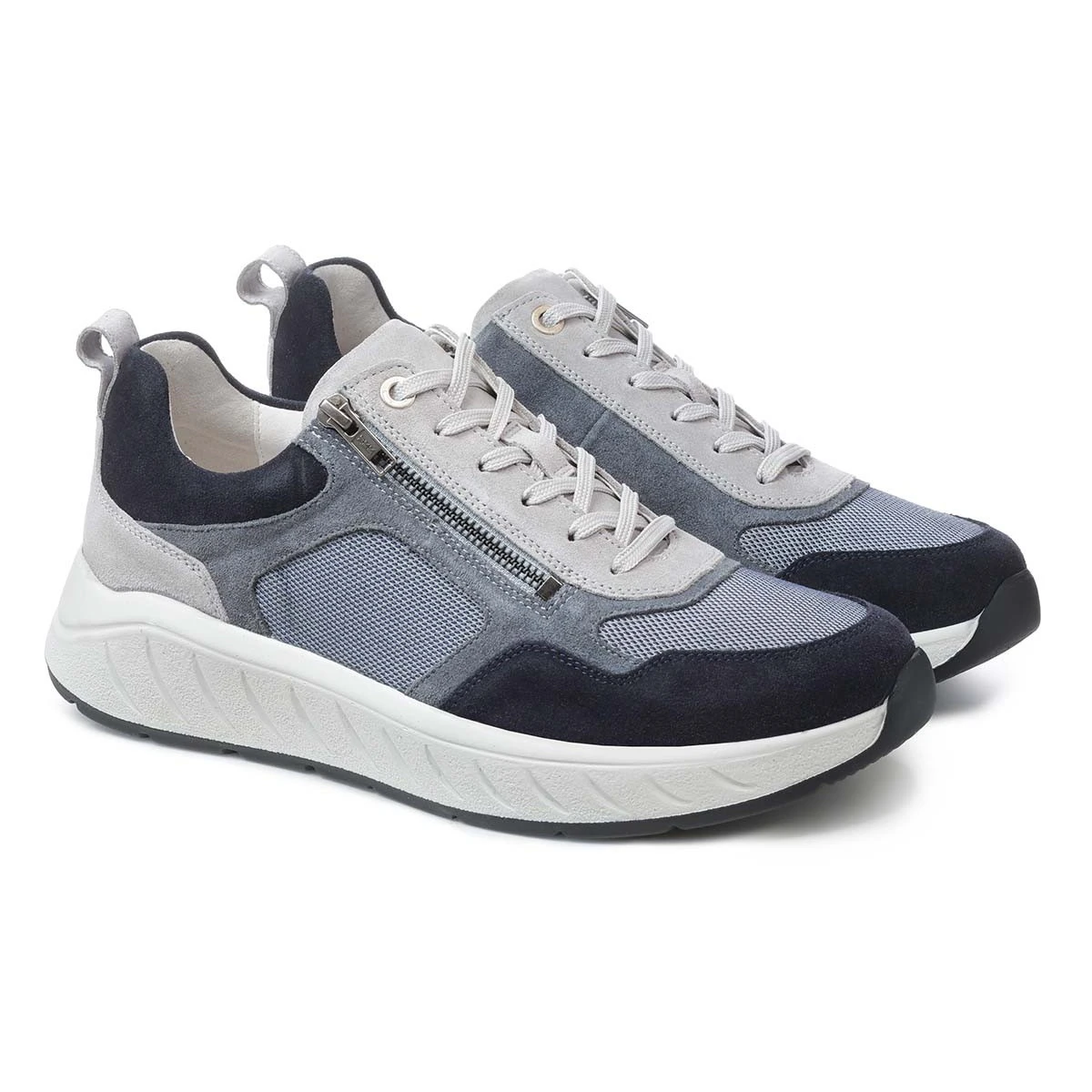 Мужские кроссовки в стиле колорблок выполнены из натуральной замши со вставками из стрейч-текстиля в области союзки и берец. Мягкий эластичный материал защищает деформированные участки стопы. Кроссовки отличаются большой полнотой и глубиной, поэтому подойдут на широкую стопу и высокий подъем.