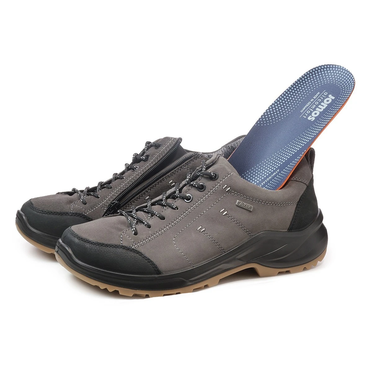 - двухслойная подошва из полиуретана и термополиуретана (ПУ+ТПУ) собственной разработки Jomos обеспечивает высокий комфорт при ходьбе и антискользящий эффект;