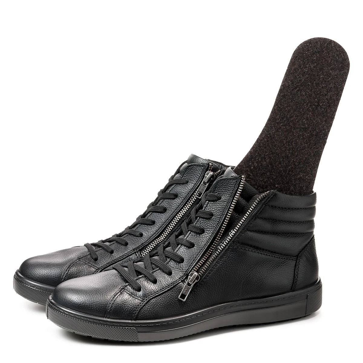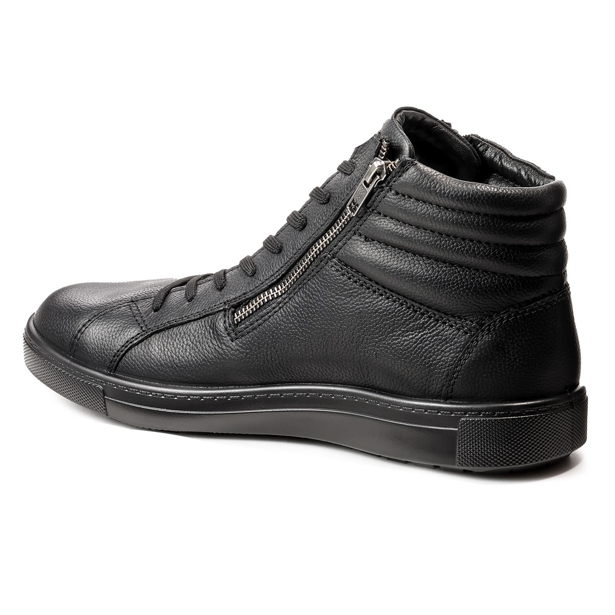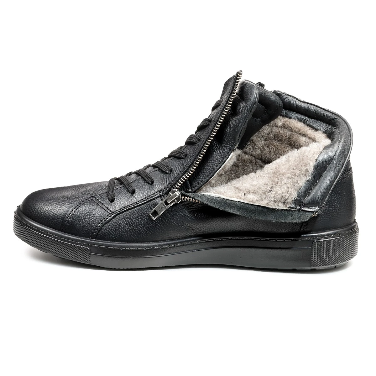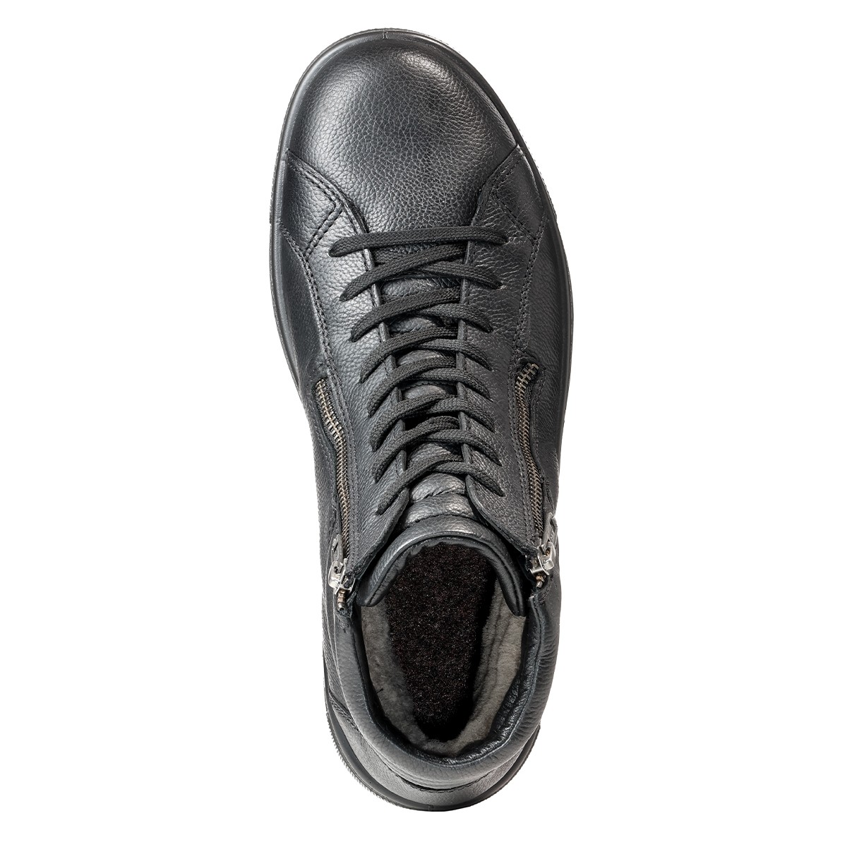 Высокие зимние кроссовки из прочной зернистой кожи черного цвета выполнены в увеличенной полноте H. Подкладка из натурального меха сохранит тепло в самую холодную погоду, а мягкая и гибкая подошва собственной разработки Jomos благодаря небольшому весу придает обуви приятную легкость.