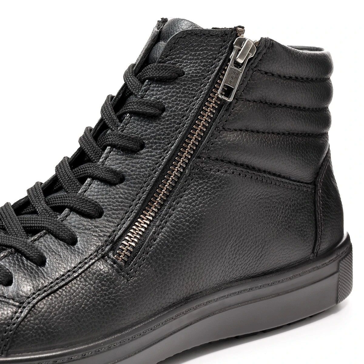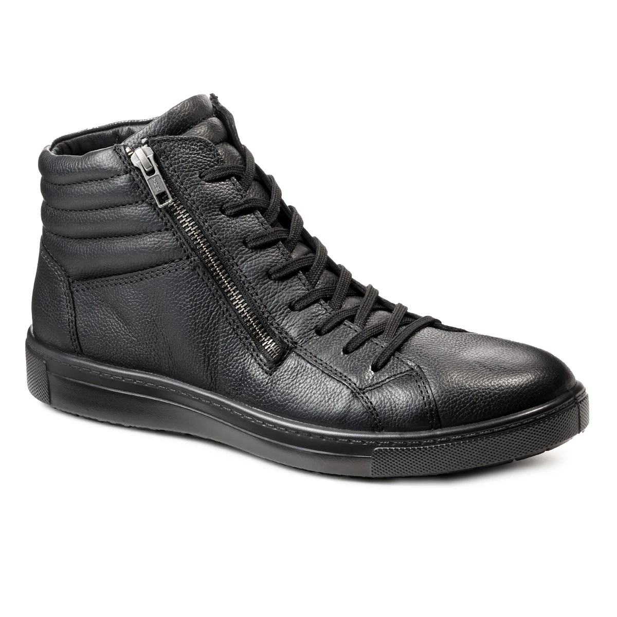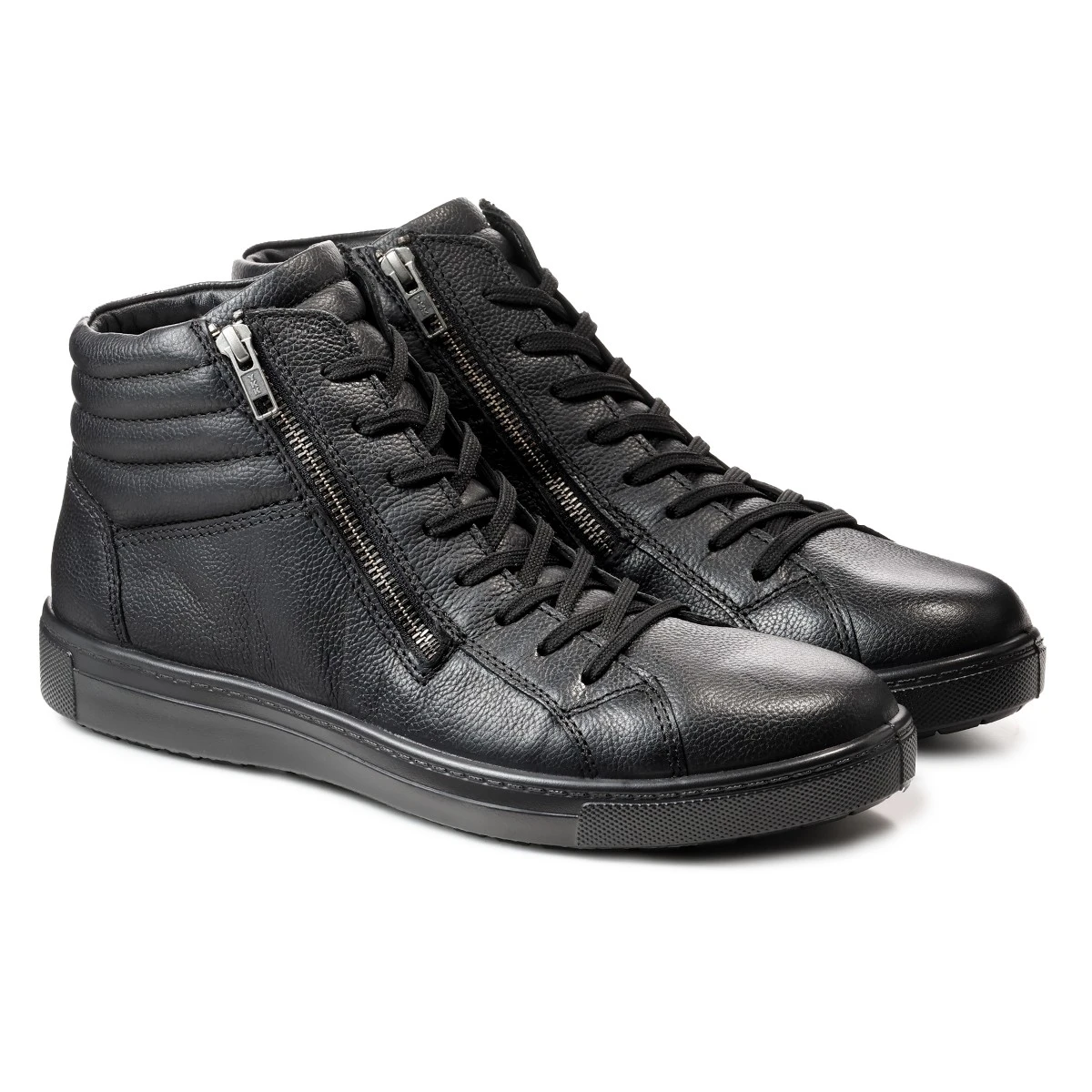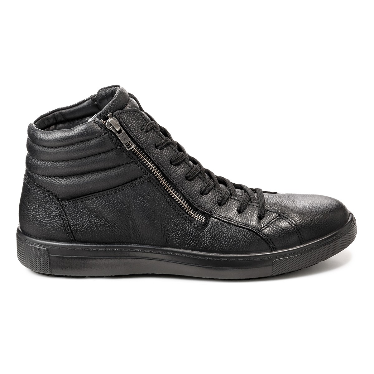 Высокие зимние кроссовки из прочной зернистой кожи черного цвета выполнены в увеличенной полноте H. Подкладка из натурального меха сохранит тепло в самую холодную погоду, а мягкая и гибкая подошва собственной разработки Jomos благодаря небольшому весу придает обуви приятную легкость.