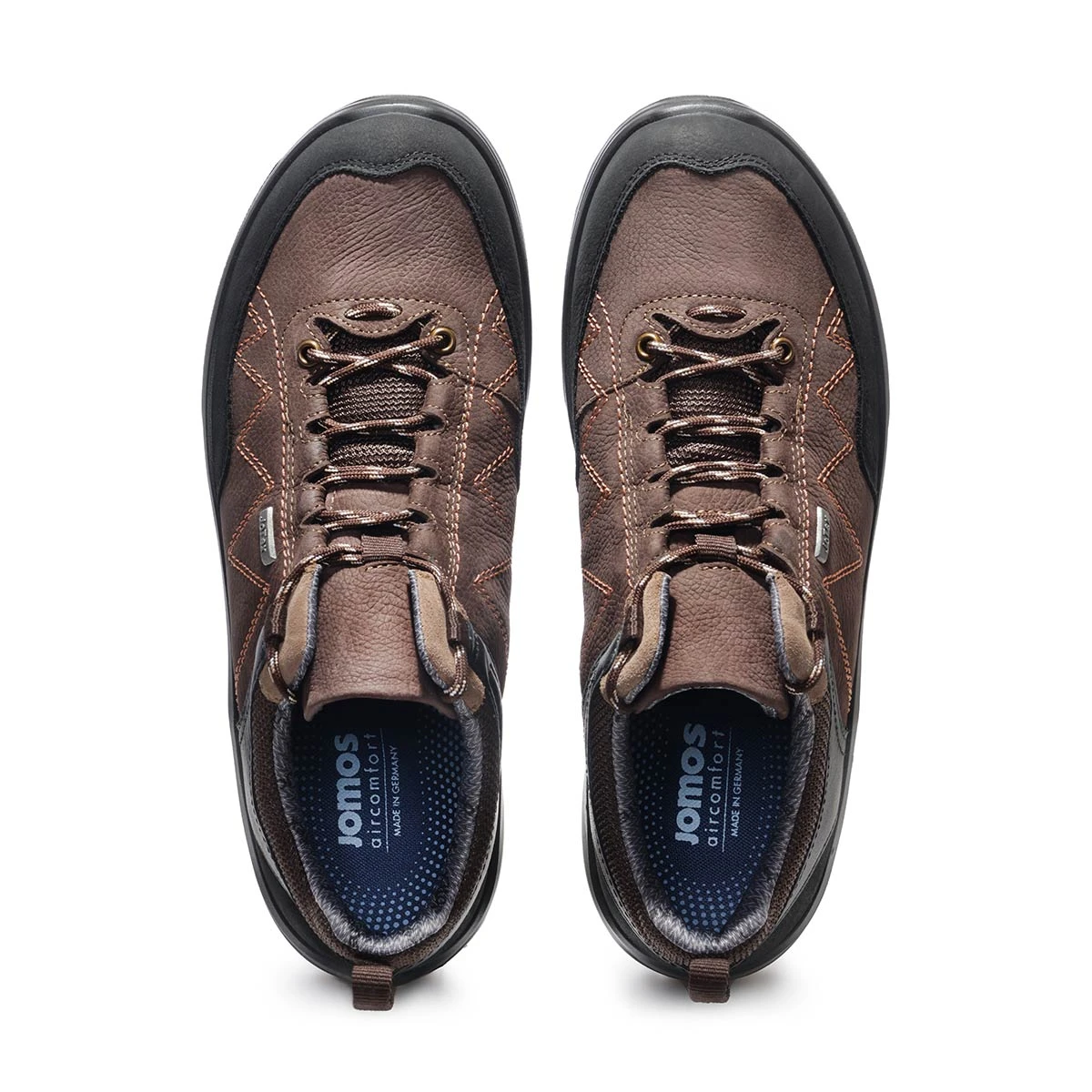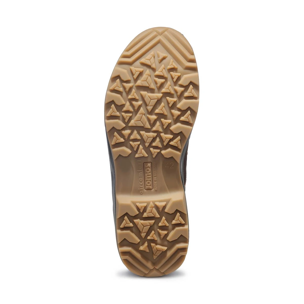 - прочная, гибкая двухслойная подошва из полиуретана собственной разработки Jomos поглощает удары при ходьбе, снимая нагрузку с суставов ног и позвоночника;