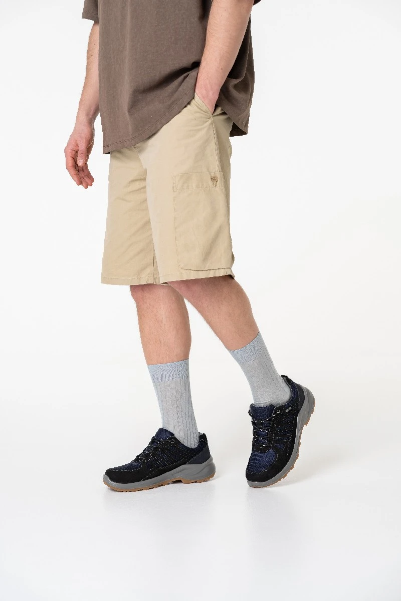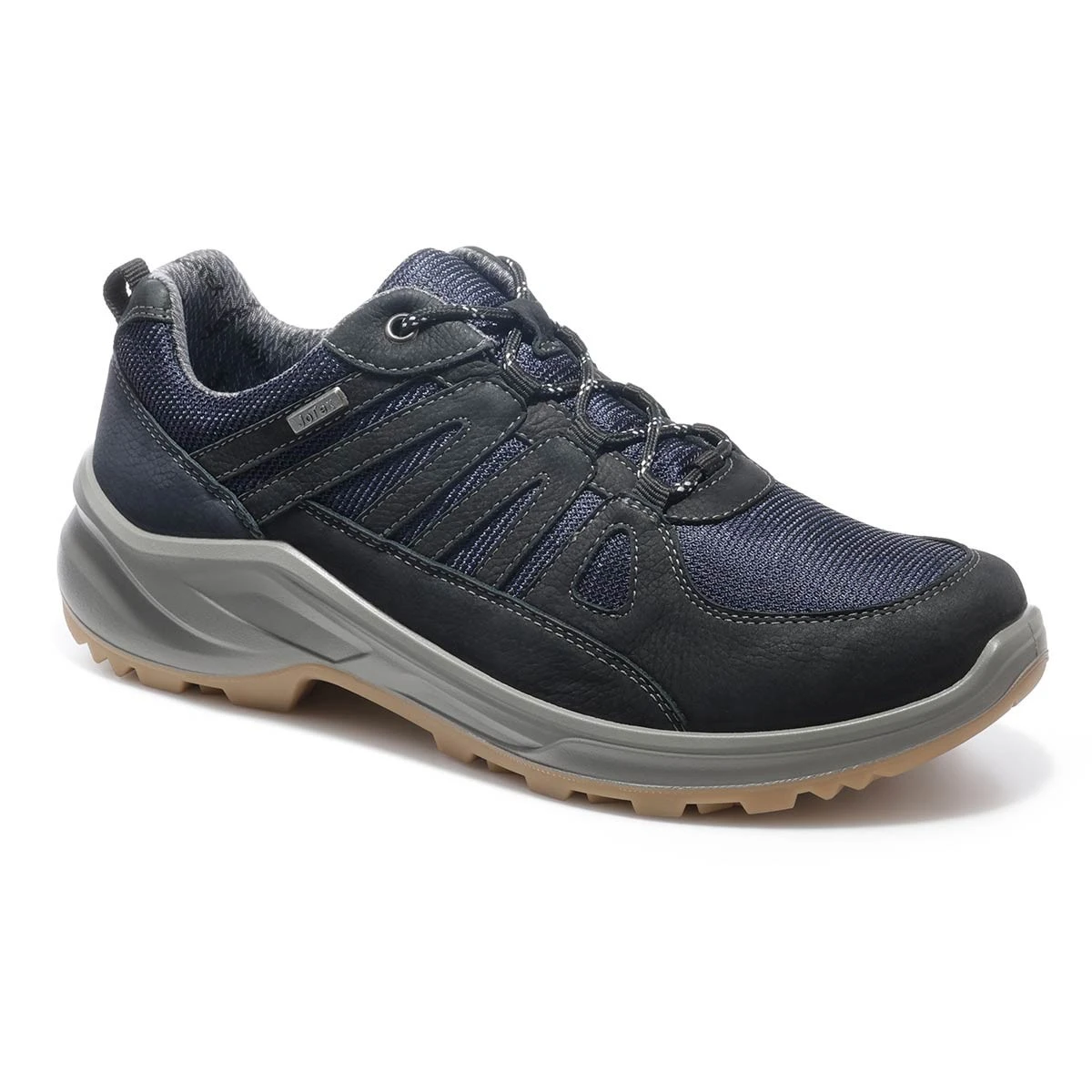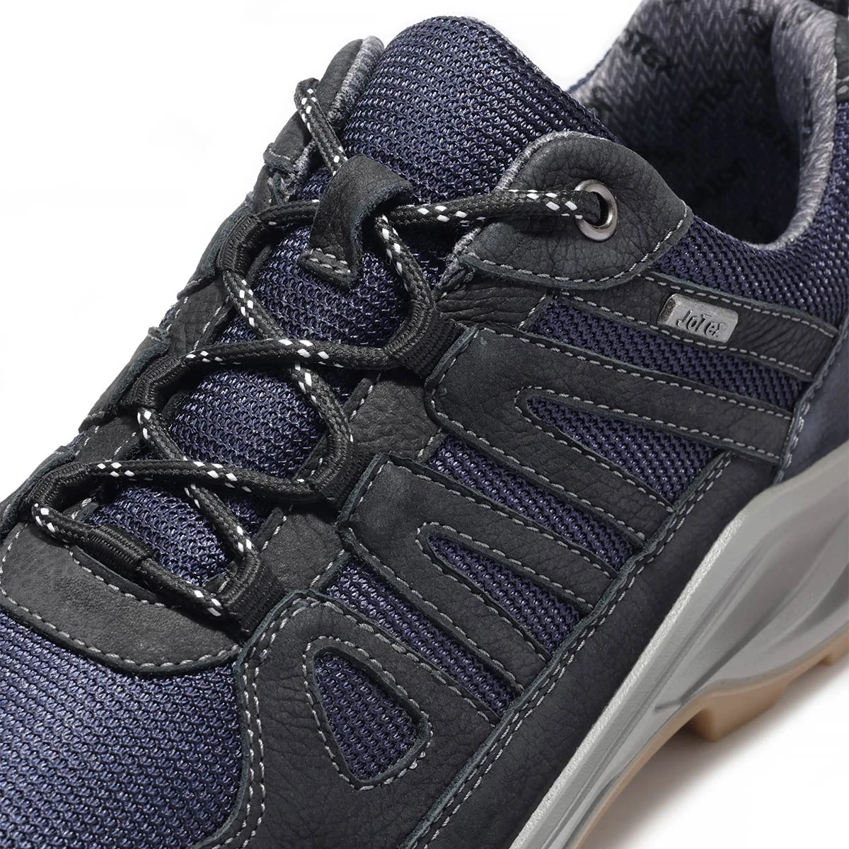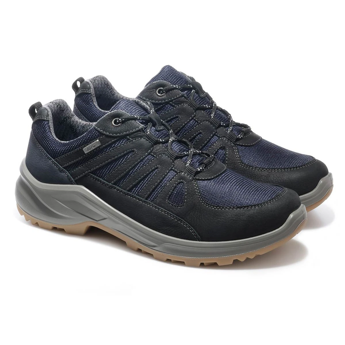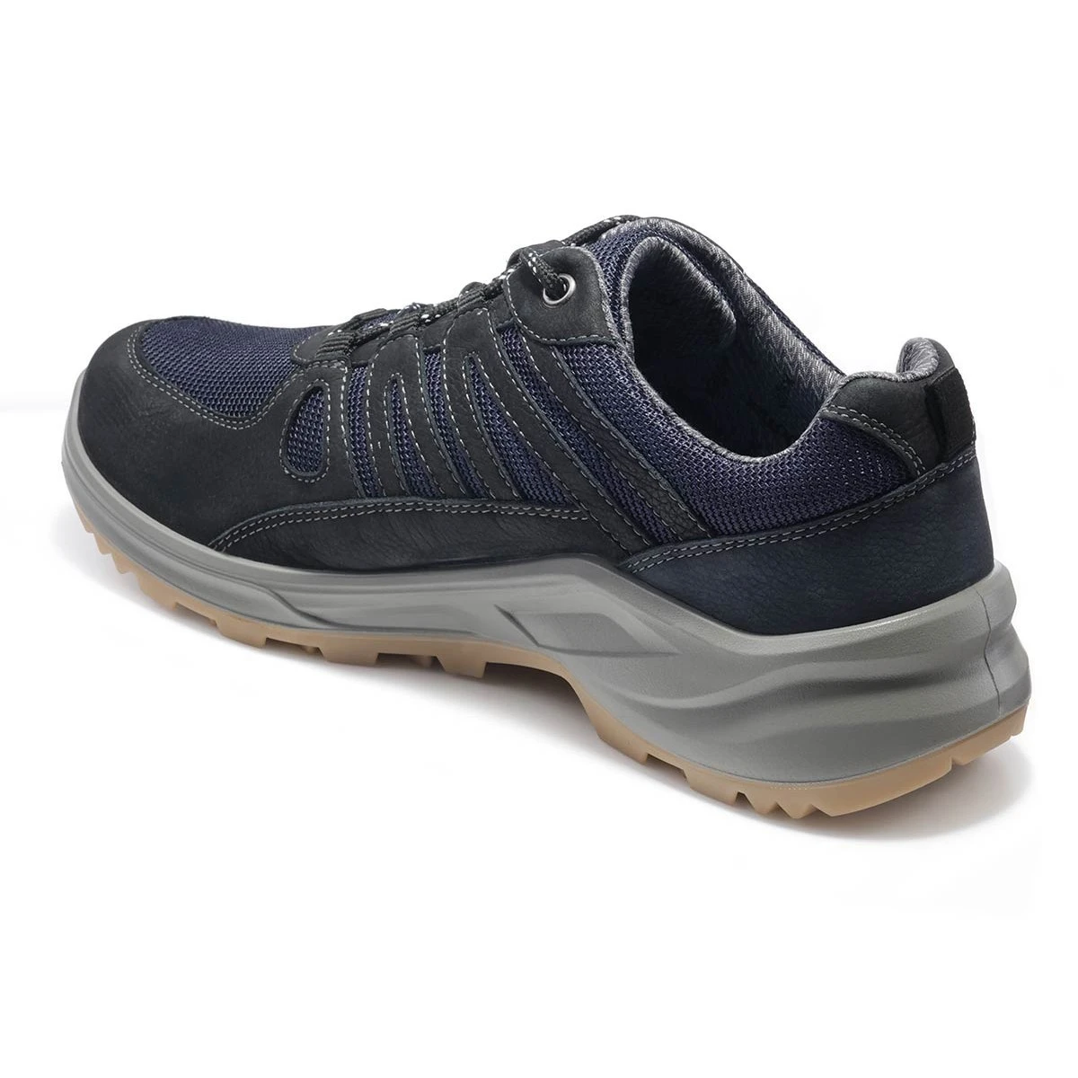 Темно-синие треккинговые полуботинки с мембраной выполнены в комбинации из мягкого, но прочного нубука и сетчатого материала. Высококачественная текстильная подкладка из мягкого и дышащего материала обеспечивает комфортный микроклимат даже при интенсивном ношении.