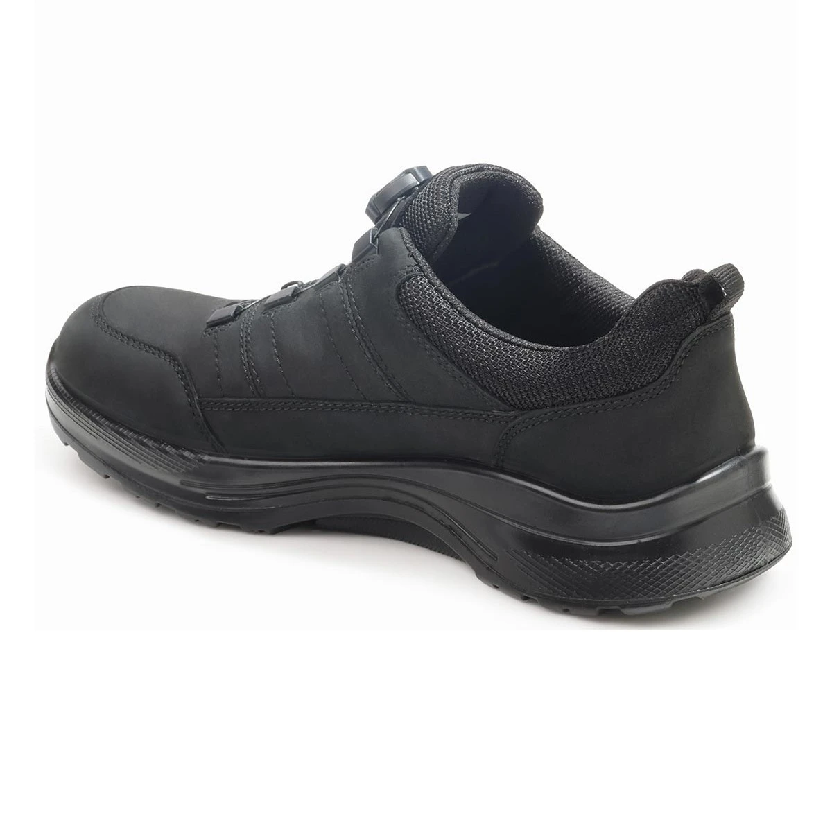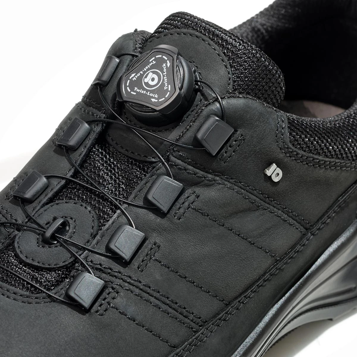 Черные ботинки в увеличенной полноте Н подходят на среднюю и умеренно-широкую стопу. Система быстрой шнуровки на леске с поворотной крышкой – самый удобный способ надевать и регулировать обувь по стопе.