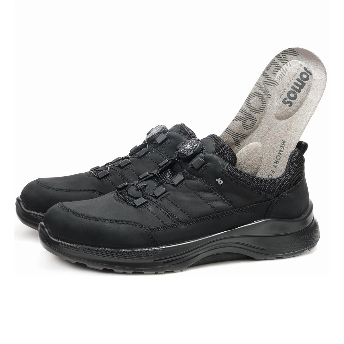 Легкая полиуретановая подошва c технологией Jomotion поглощает удары при ходьбе, стабилизирует стопу и поддерживает оптимальный перекат, снимая нагрузку с суставов ног и позвоночника при ходьбе. А противоскользящий рельеф прочной, износостойкой подошвы обеспечивает превосходное сцепление со скользкой поверхностью.