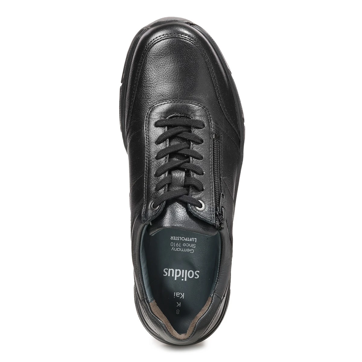 Мужские полуботинки Solidus на колодке Kai выполнены из натуральной кожи. Подкладка и стелька – натуральная кожа. Модель на утолщенной подошве 3,5 см – практичное решение на весну и на осень. Легкая модель в нейтральном черном цвете подойдет на каждый день и будет незаменима к образу в стиле кэжуал.