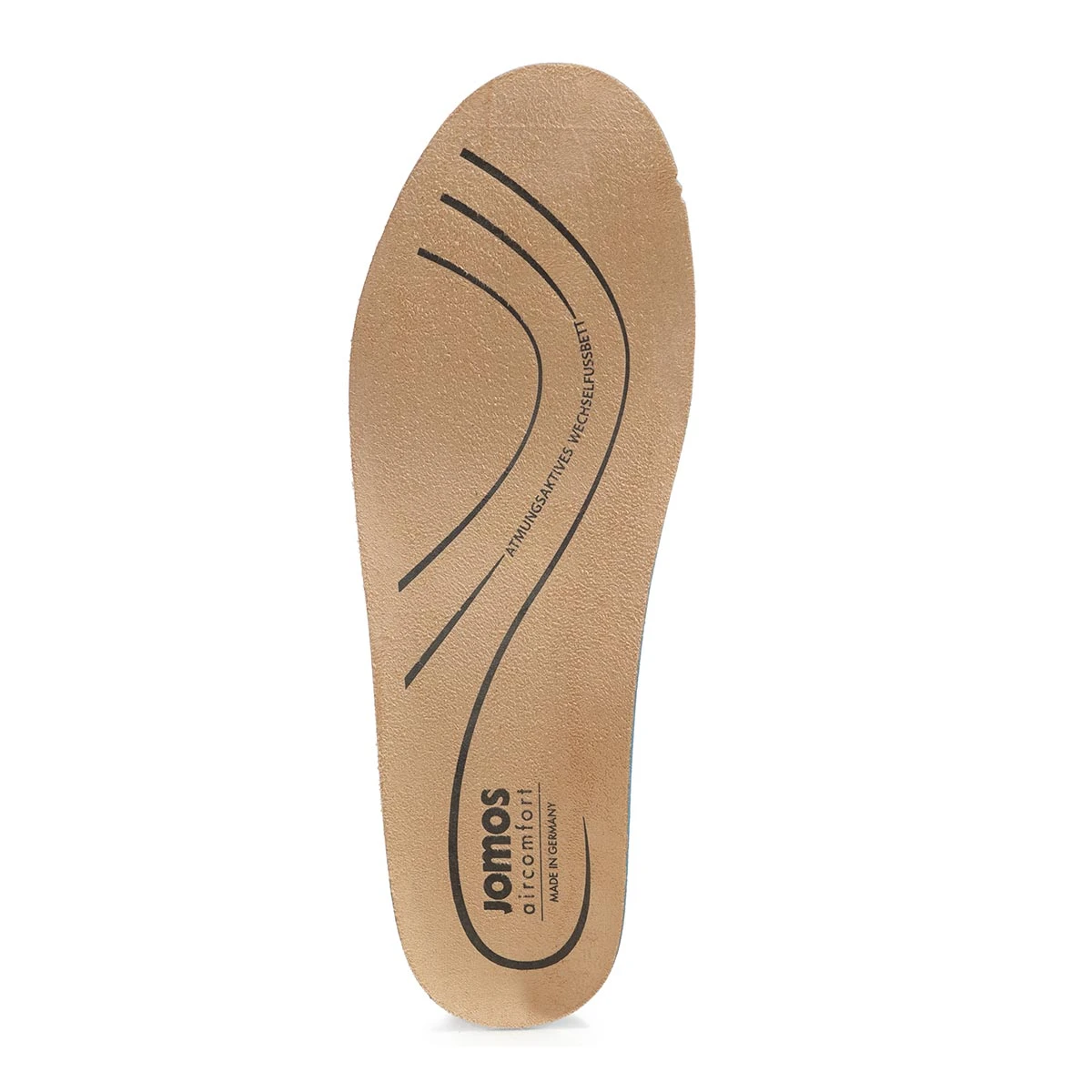 Съемная дышащая стелька AirBlueCom на вспененной основе, запоминающей форму, отличается бархатистым покрытием “под замшу”. Она обладает отличной воздухопроницаемостью и прекрасно адаптируется по стопе, оказывая мягкую поддержку сводам. Покрытие стельки – дышащий текстиль.