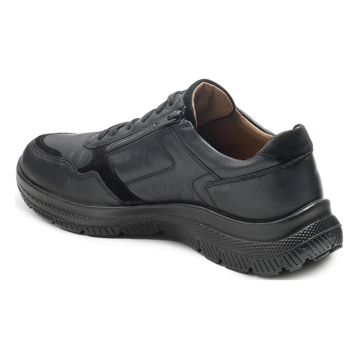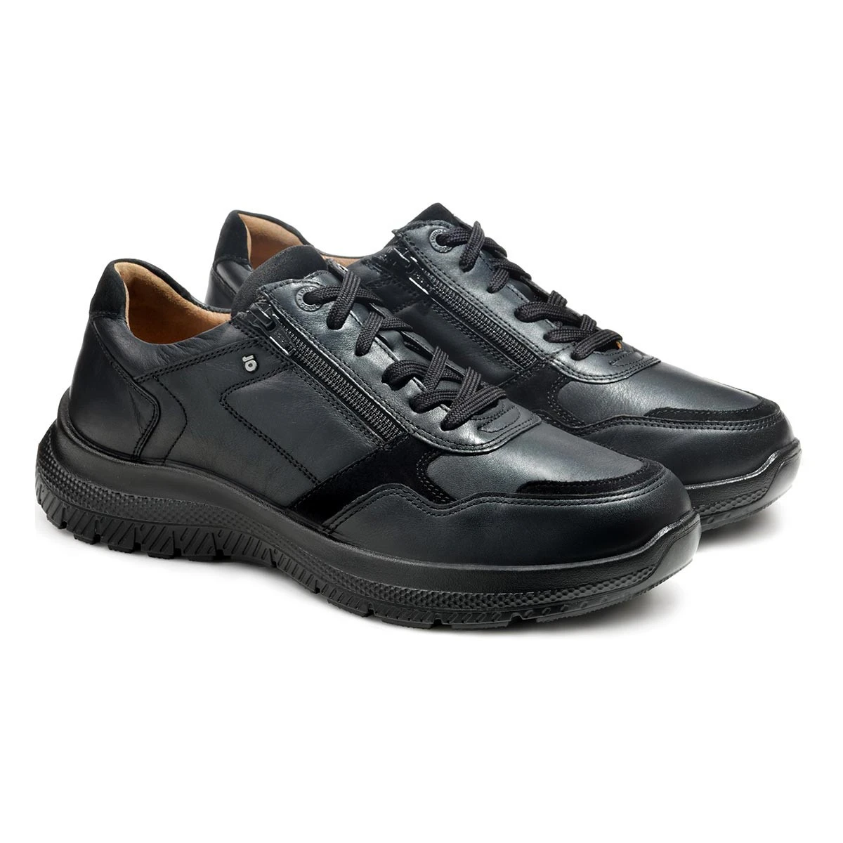 Мужские полуботинки на высокой подошве выполнены из прочной гладкой кожи с элементами из замши. Подкладка модели – натуральная кожа, которая обеспечивает комфортный микроклимат в обуви даже при интенсивном ношении.